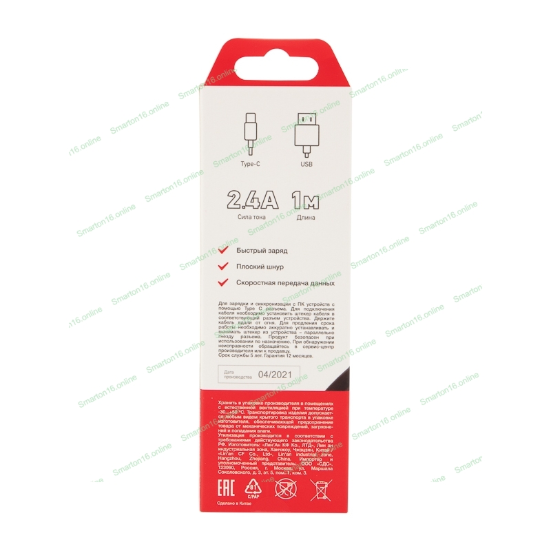 Кабель USB-Type-C Rexant 2,4A/PVC/flat/1м
