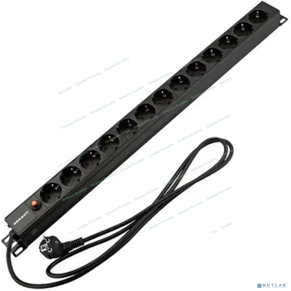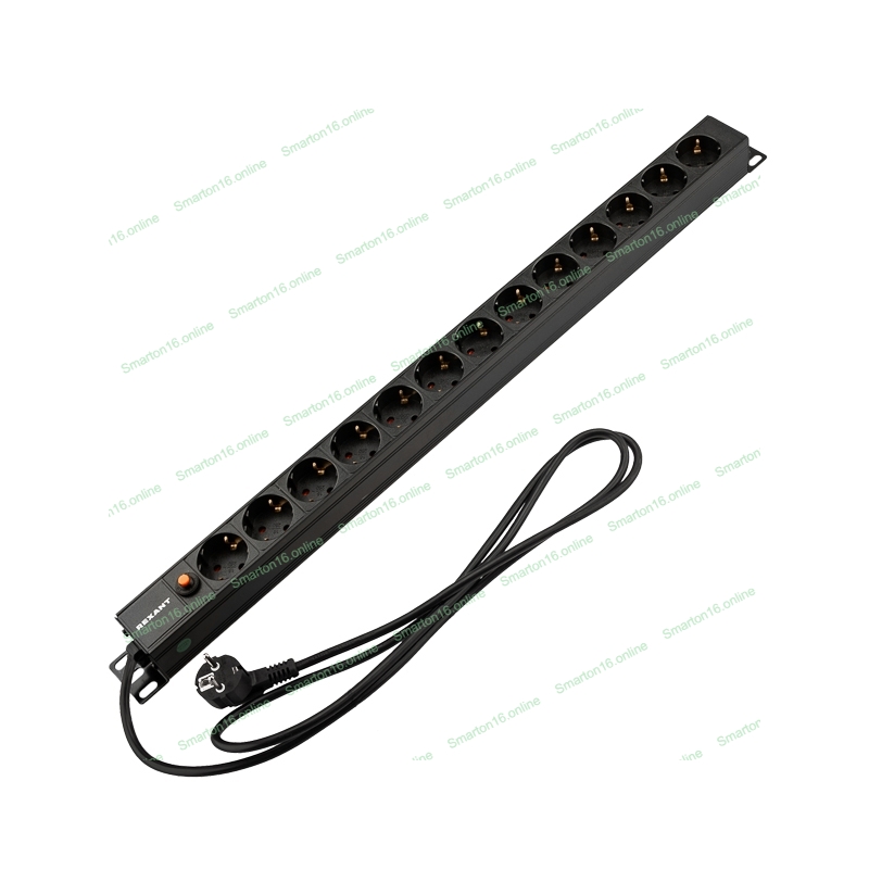 Блок распределения питания Rexant для 19" шкафов, вертикальный, 13 розеток СЕЕ 7/4, 16A, фильтр, без выкл, алюм корп, шнур 2м, вилка СЕЕ 7/7