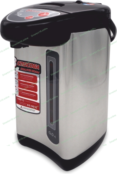 Термопот Sakura SA-336B Объем: 6,0 л. Мощность: 750 Вт. Тип управления: кнопочный. Повторное кипячение. Поддержание температуры воды: 85-90°С. Способ подачи воды: автоматический кнопкой, нажатием чашки, помпой. Материал колбы: нерж. сталь. Материал корпуса: металл.