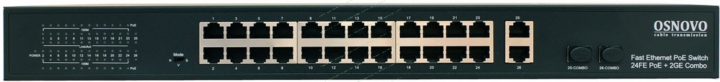 Коммутатор Osnovo SW-62422(400W) 26x100Mb 24PoE+ 400W неуправляемый