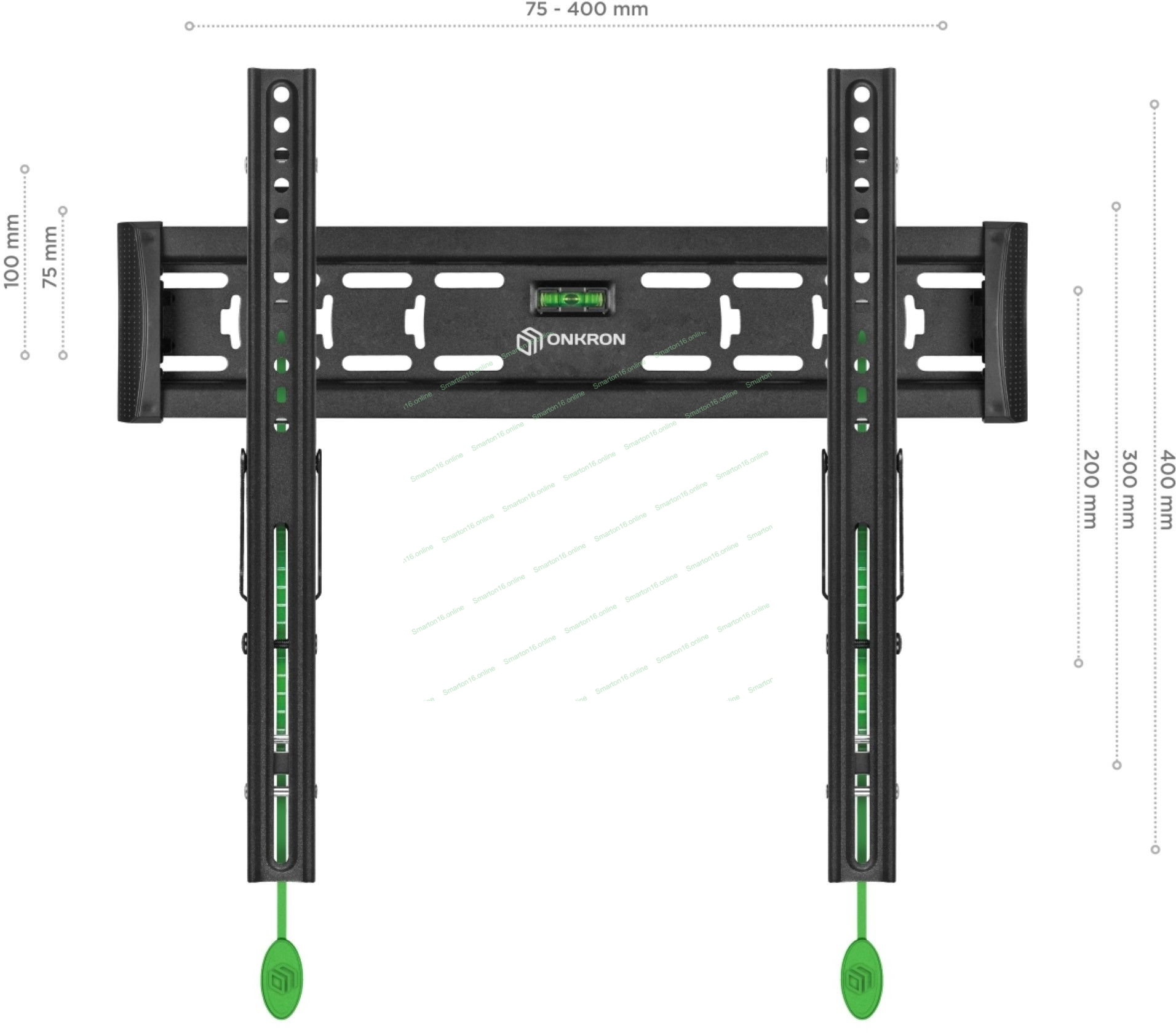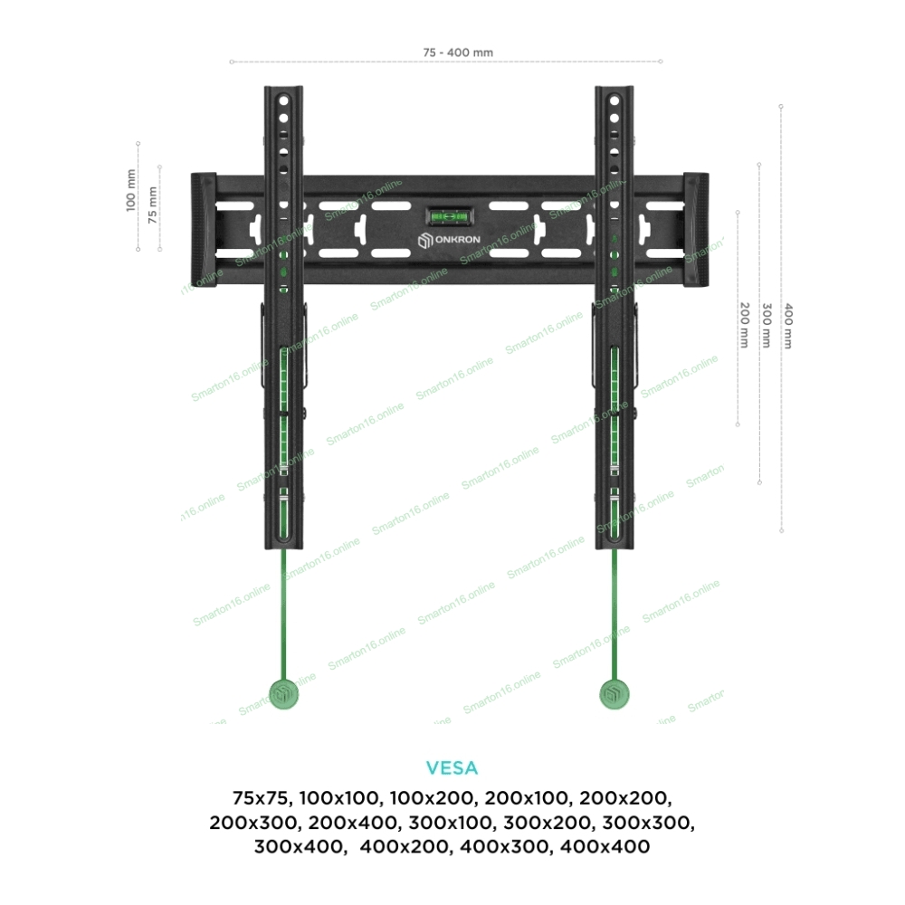 VESA: 75x75, 100x100, 100x200, 200x100, 200x200, 200x300, 200x400, 300x100, 300x200, 300x300, 300x400, 400x200, 400x300, 400x400 мм