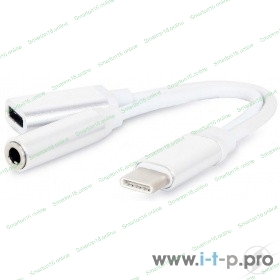Переходник Cablexpert Переходник USB, USB Type-C/Jack3.5 F+ Type-C F, пакет (CCA-UC3.5F-02-W)
