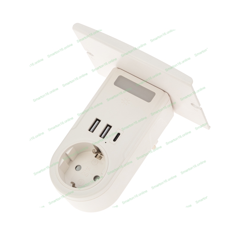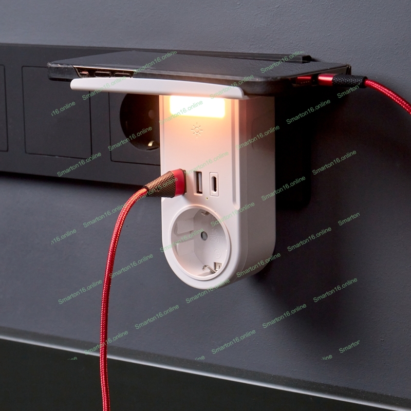 Сетевое зарядное устройство USB Rexant (2хUSB-A + USB-С) + розетка 220-250В с подсветкой и подставкой для телефона