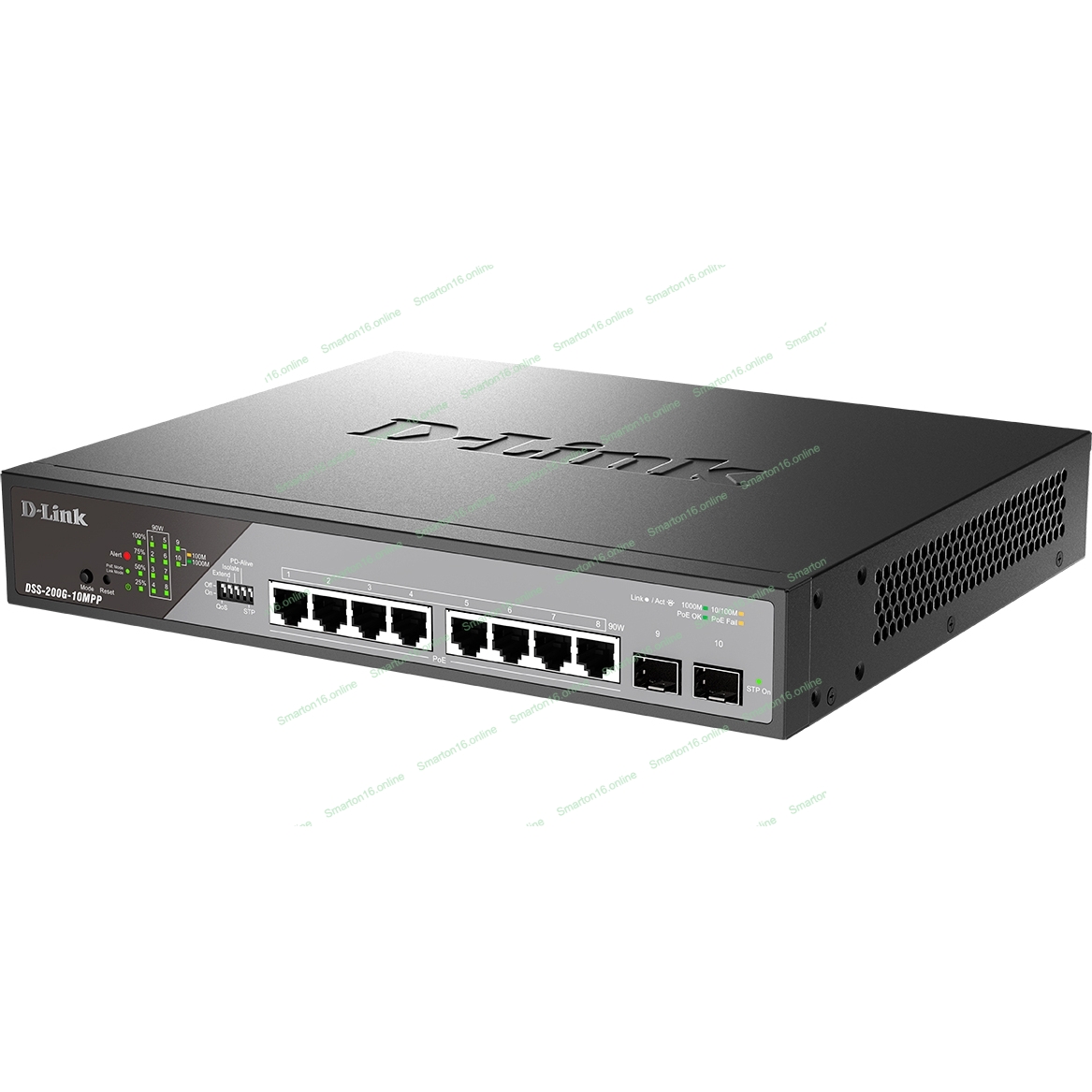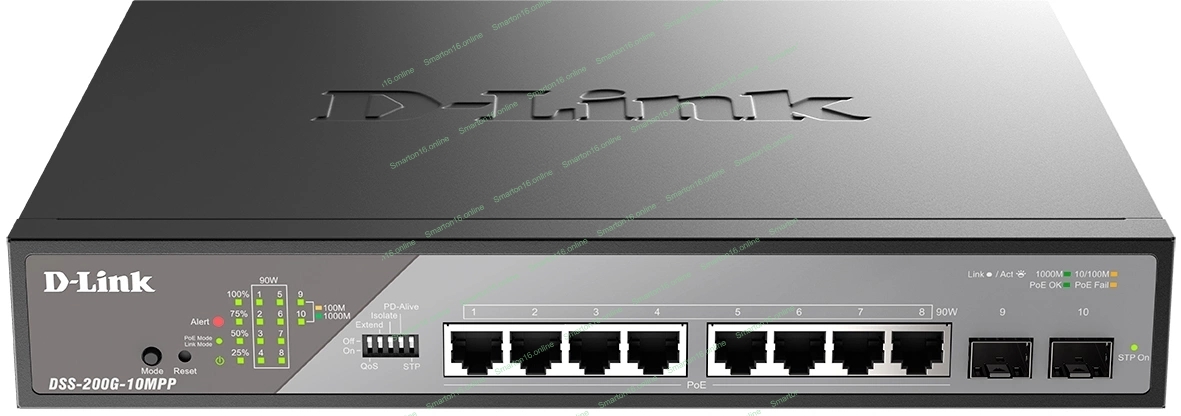 Коммутатор сетевой Smart L2 Surveillance Switch 8х1000Base-T PoE 802.3bt 90W, 2x1000Base-X SFP, PoE Budget 242W, Long-range PoE up to 250m