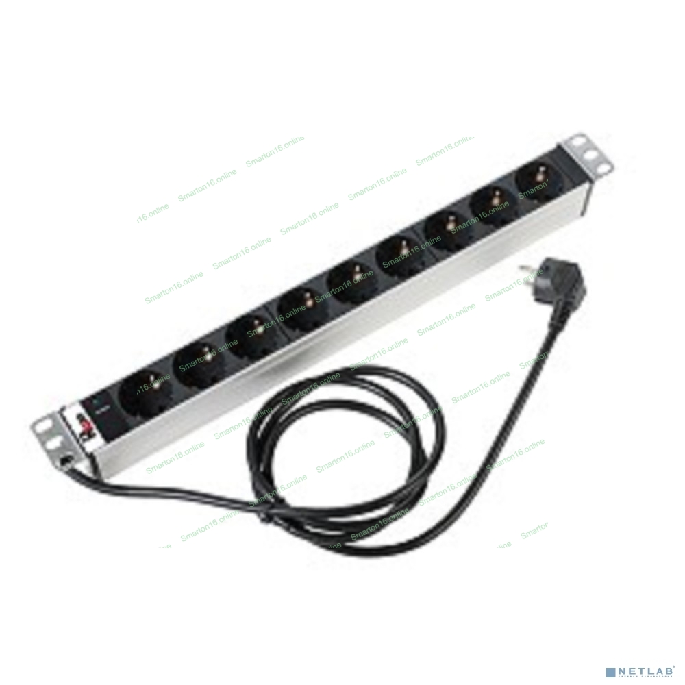 Блок розеток Rem-16 с инд., 9 Shuko, 16A, алюм., 19", шнур 3 м. (R-16-9S-I-440-3)