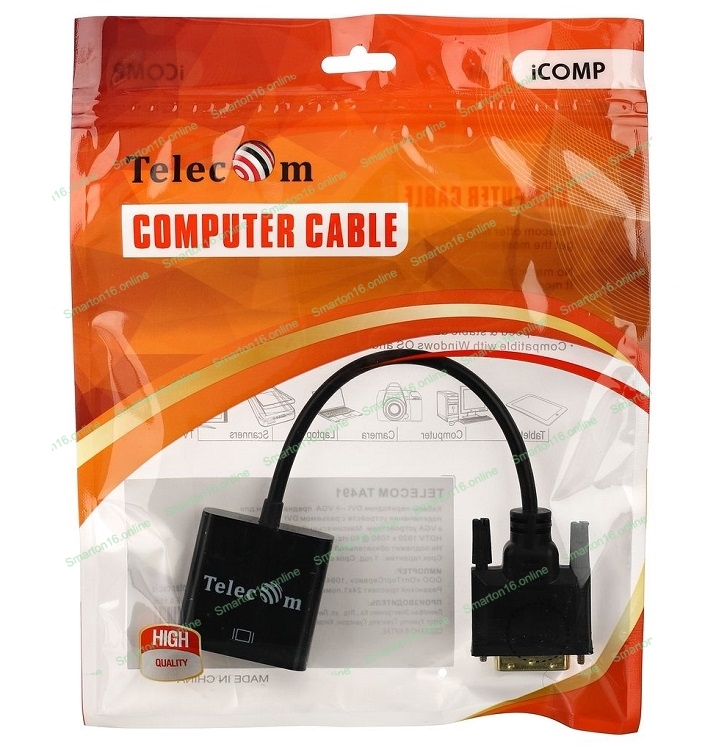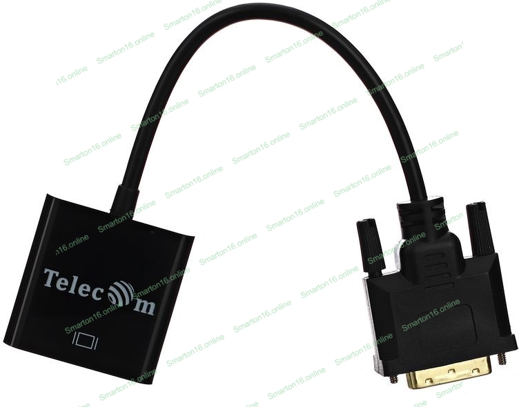 TELECOM TA491. Кабель-переходник DVI -D (M) --> VGA (F) предназначен для подключения устройств с разъемом DVI к VGA устройствам. В обратном направлении переходник не работает. Максимальный видео режим HDTV 1920 x 1080 @ 60 Hz.