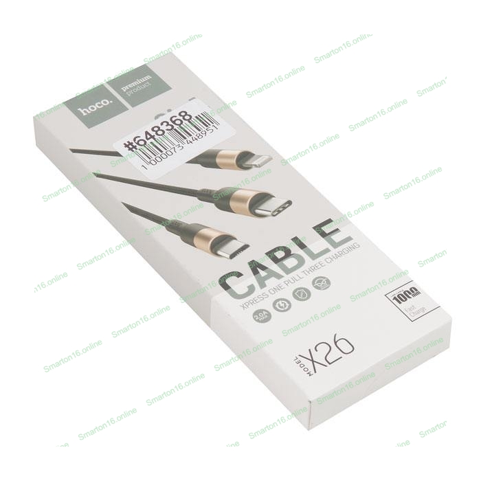 Кабель USB HOCO X26 Xpress 3 в 1 для Lightning, Micro USB, Type-C, 2.0A, длина 1.0м, черный с золотым