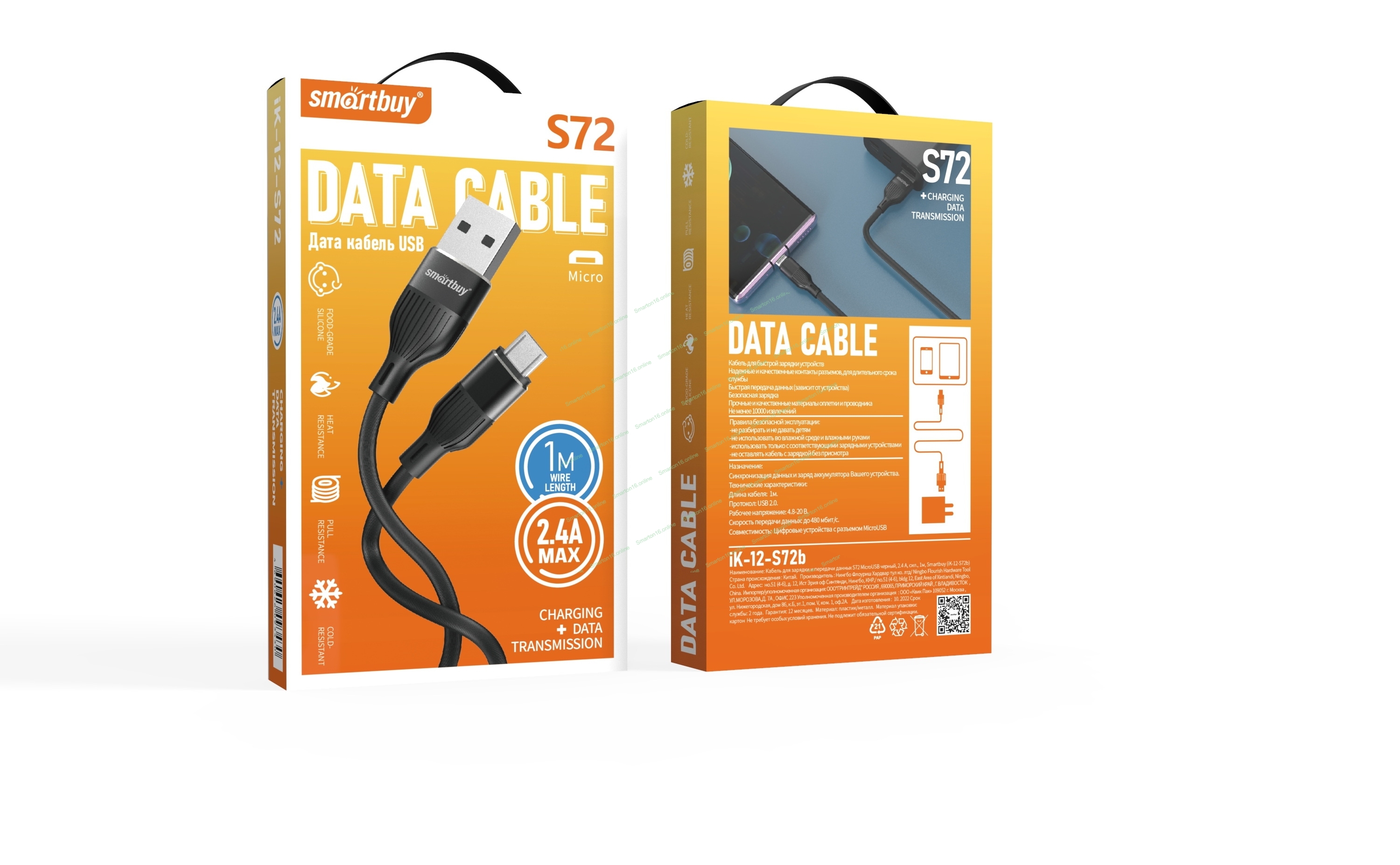 Кабель Smartbuy (iK-12-S72b) S72 MicroUSB черный, 2.4 А, сил., 1м