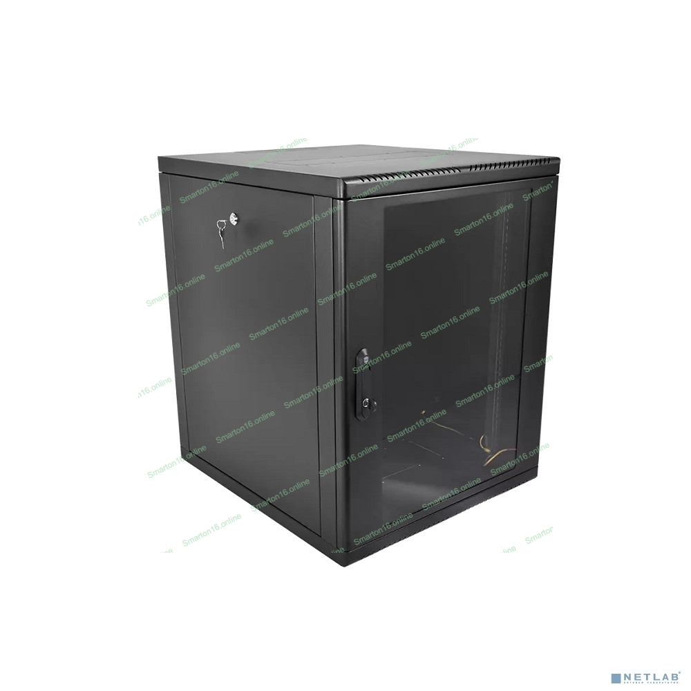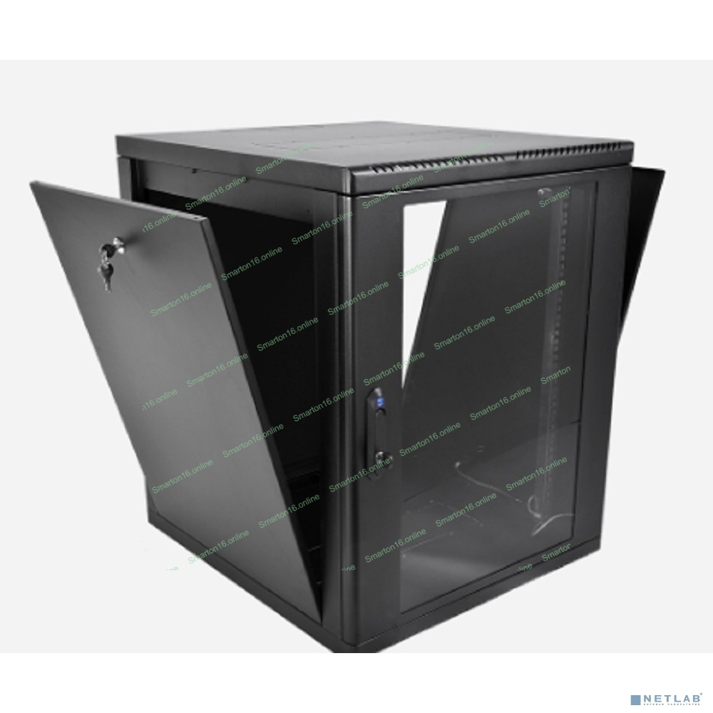 Шкаф телекоммуникационный настенный разборный ЦМО 12U (600 x 520) съемные стенки, дверь стекло, черный (ШРН-М-12.500-9005)
