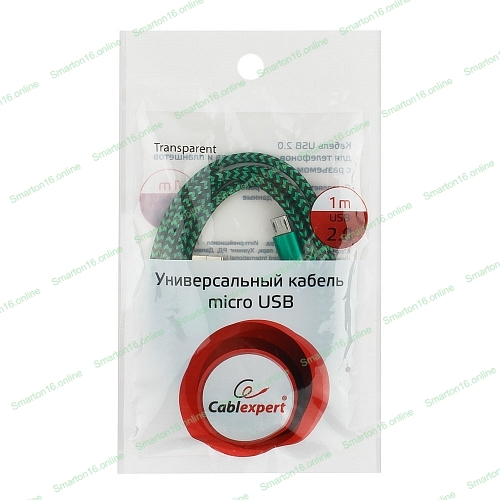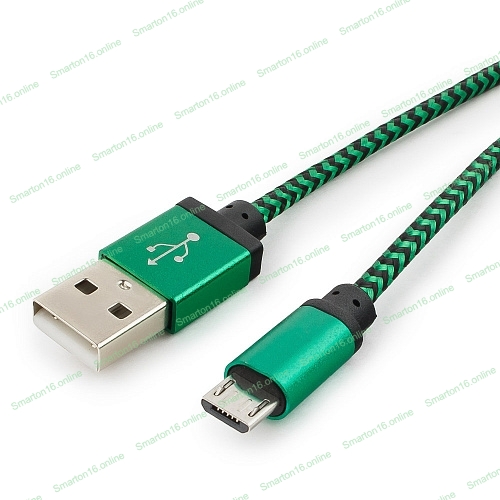 Кабель Gembird USB 2.0 Cablexpert AM/microBM 5P, 1м, нейлоновая оплетка, алюминиевые разъемы, зеленый, пакет