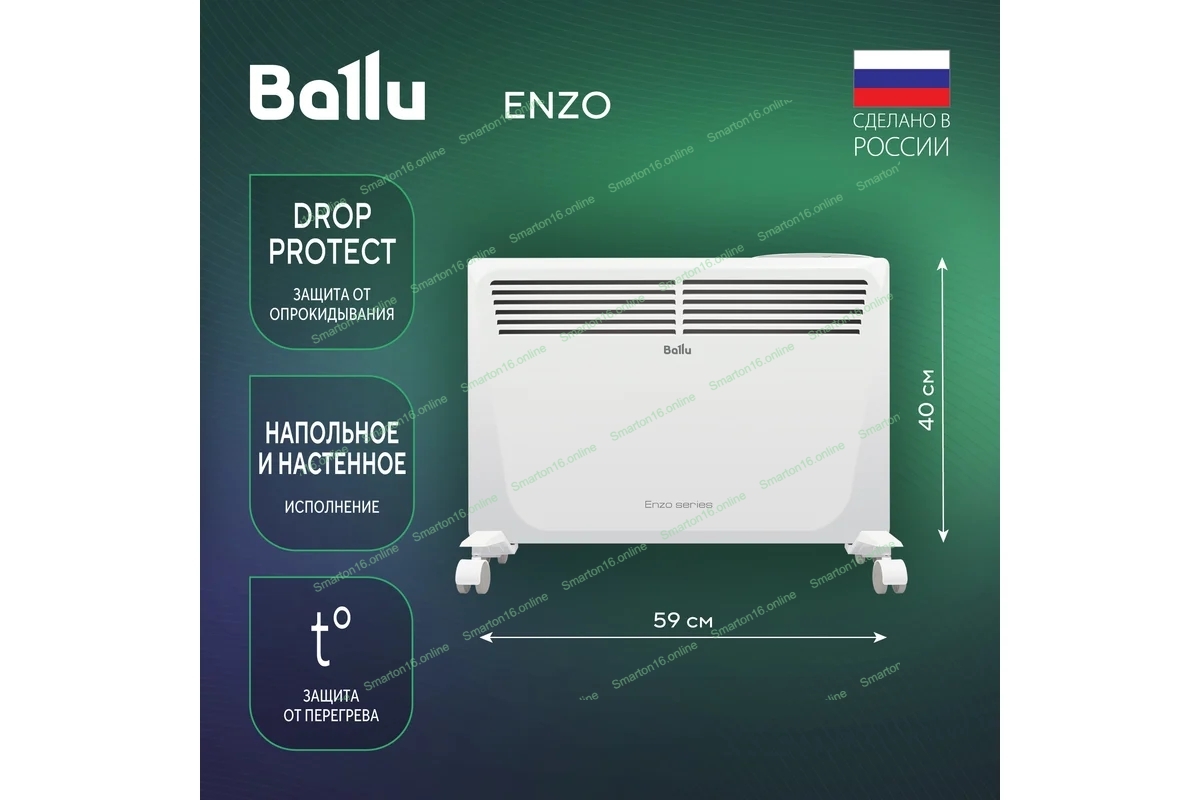 Конвектор электрический Ballu Enzo BEC/EZER-1500 белый, 1500 Вт, 20 м2, термостат, дисплей