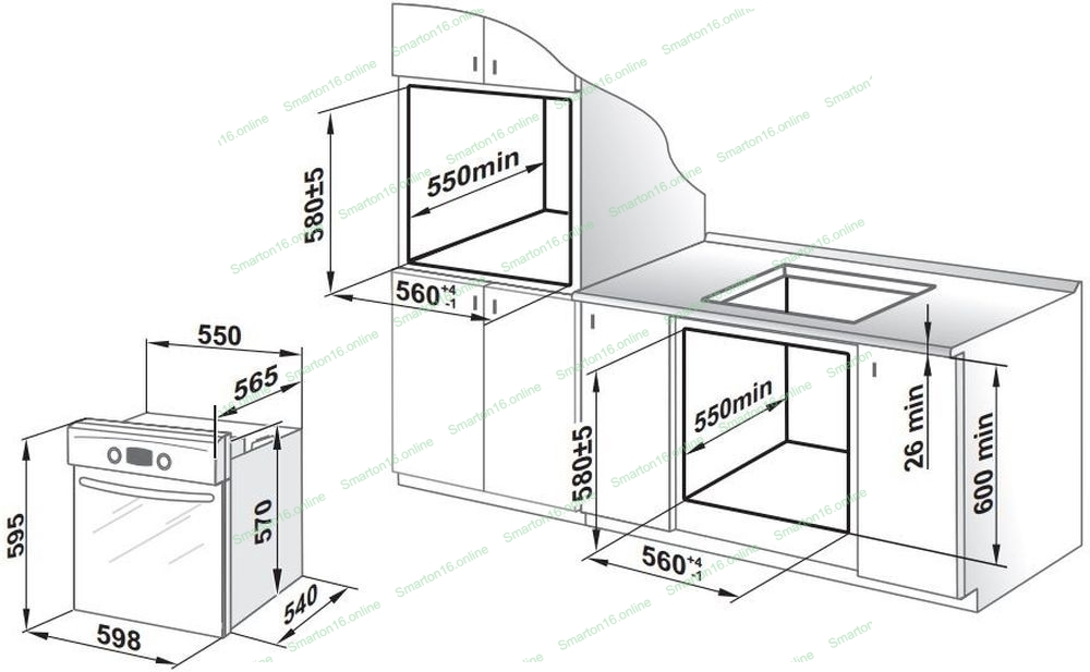 Диапазон температур работы духовки 50-250 °C Габариты, см 59,8х56,5х59,5