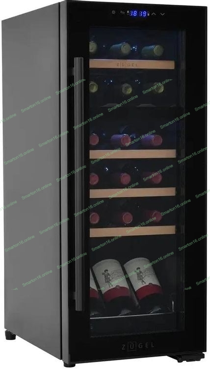 Винный шкаф ZÜGEL ZCWF184DB черный, 50 л, 2 отсека, 18 бут.