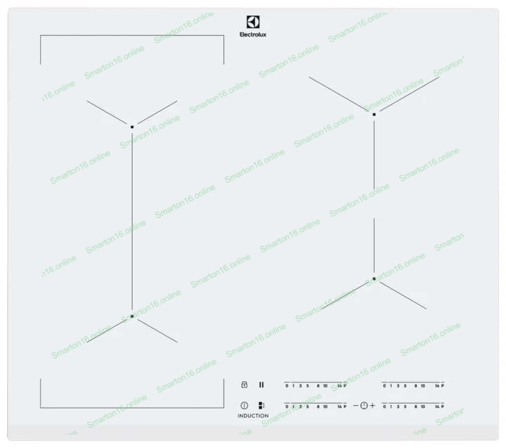 59 см, цвет: белый, индивидуальный слайдер для каждой зоны нагрева, 3-хступенчатая индикация остаточного тепла, акустический сигнал (вкл/выкл), блокировка панели управления, Таймер отключения с функцией Эко, Будильник, Таймер отключения, Функция "Booster", режим без звука, скошенный край
