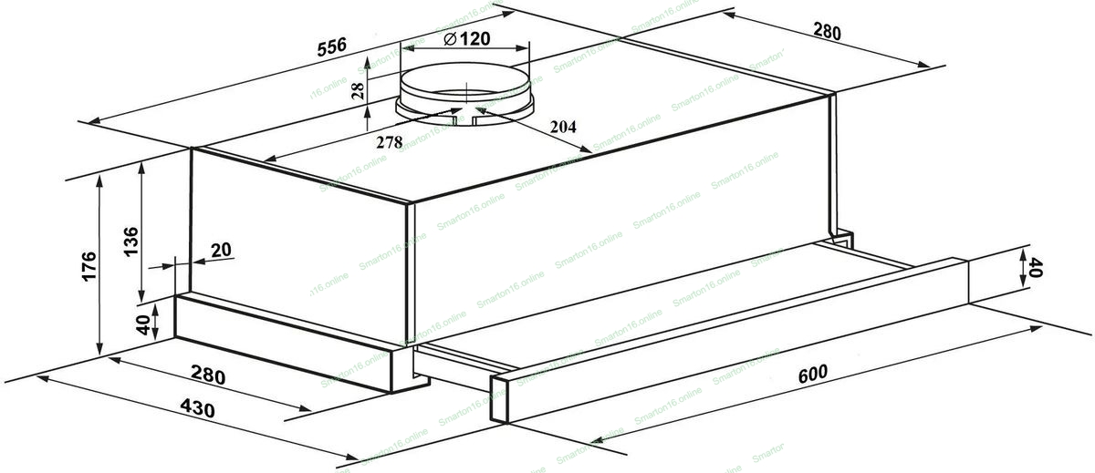 • Тип: встраиваемая • Цвет: белый • Управление: колыбельное • Ширина, мм: 600 • Полная потребляемая мощность, Вт: 140• Количество скоростей: 2 • Максимальная производительность, м3/ч: 480• Диаметр воздуховода, мм: 120 • Площадь кухни: до 12 м2 • Уровень шума, Дб: 50 • Освещение, Вт: лампа 2*40• В комплекте: переходник, инструкция на русском языке • В опции: CF 110• Сделано в Китае