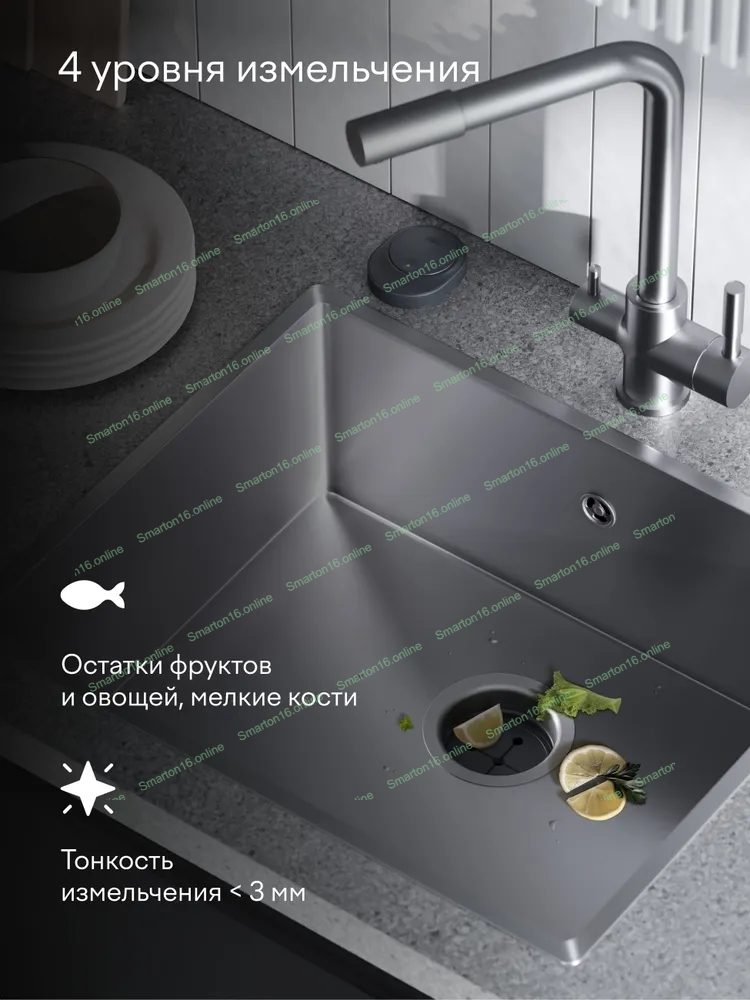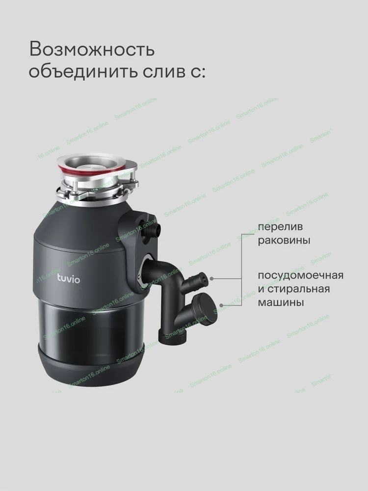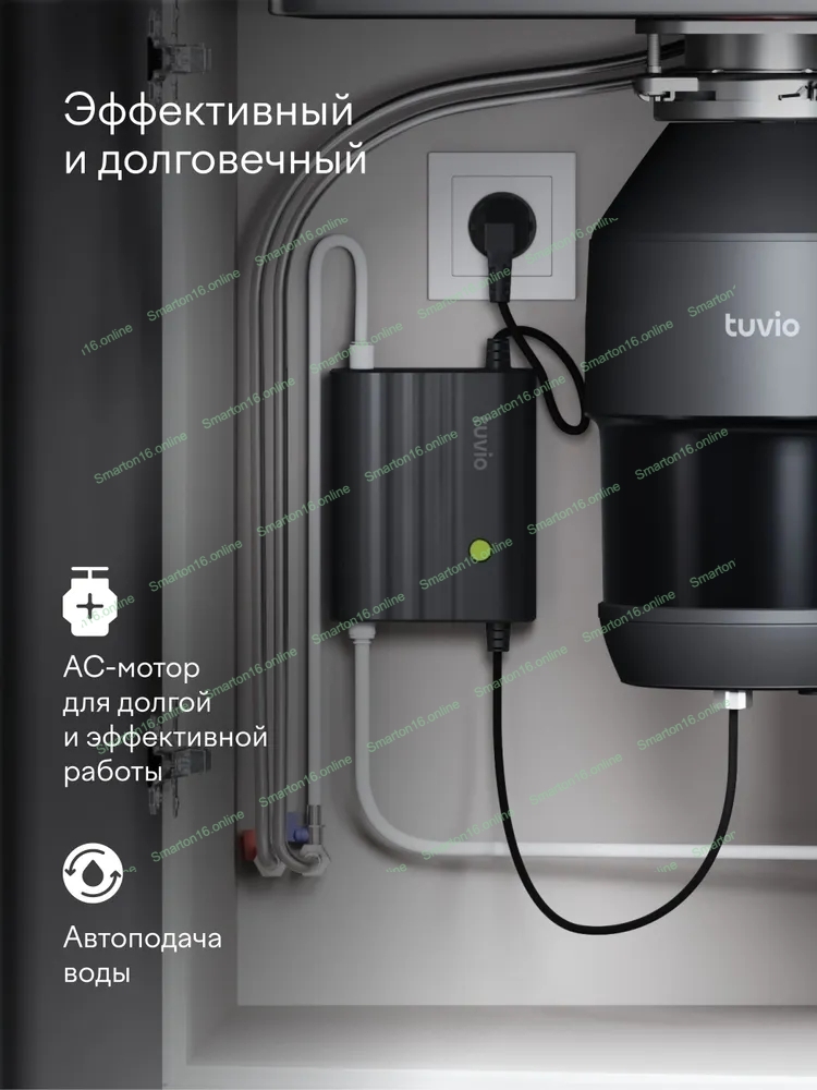 Измельчитель пищевых отходов Tuvio KDА25H11 с автоматической подачей воды и подсветкой
