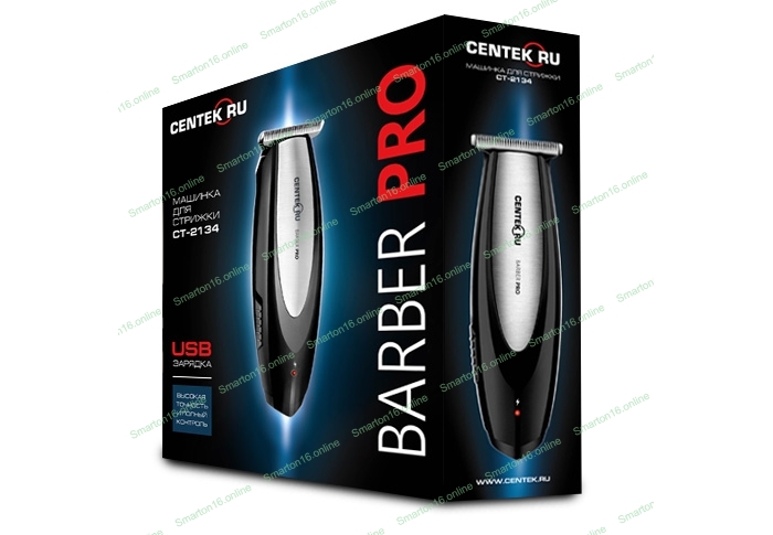 Машинка для стрижки Centek CT-2134 (чер/сталь) 3 насадки, USB зарядка, время работы 55 мин