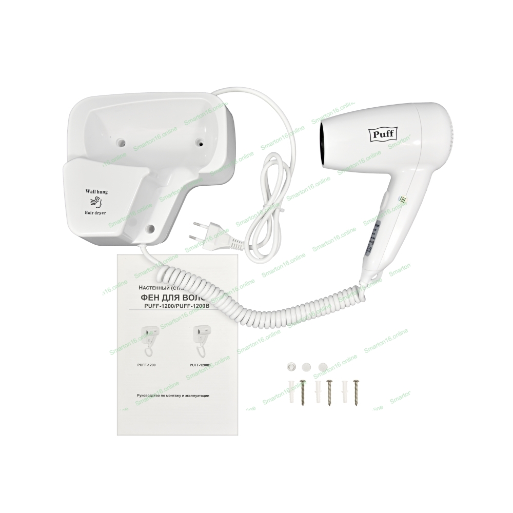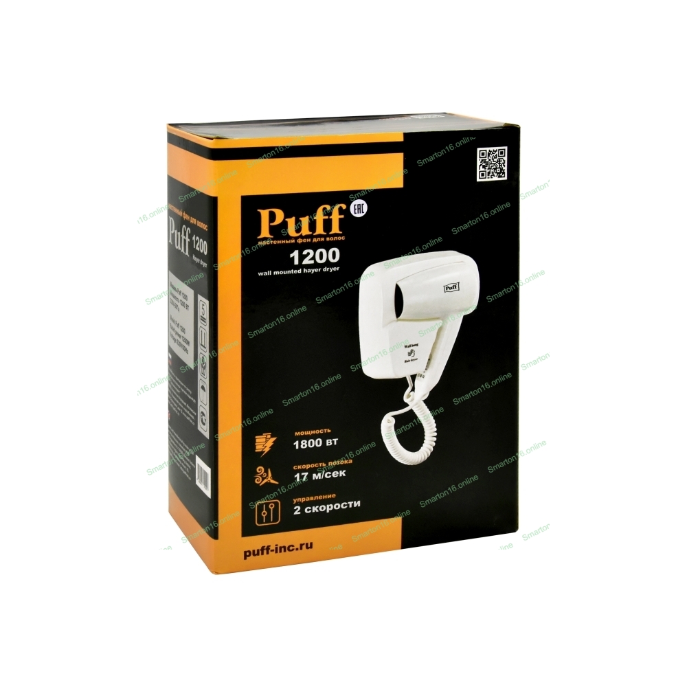 Фен Puff 1200 белый, 1200 Вт