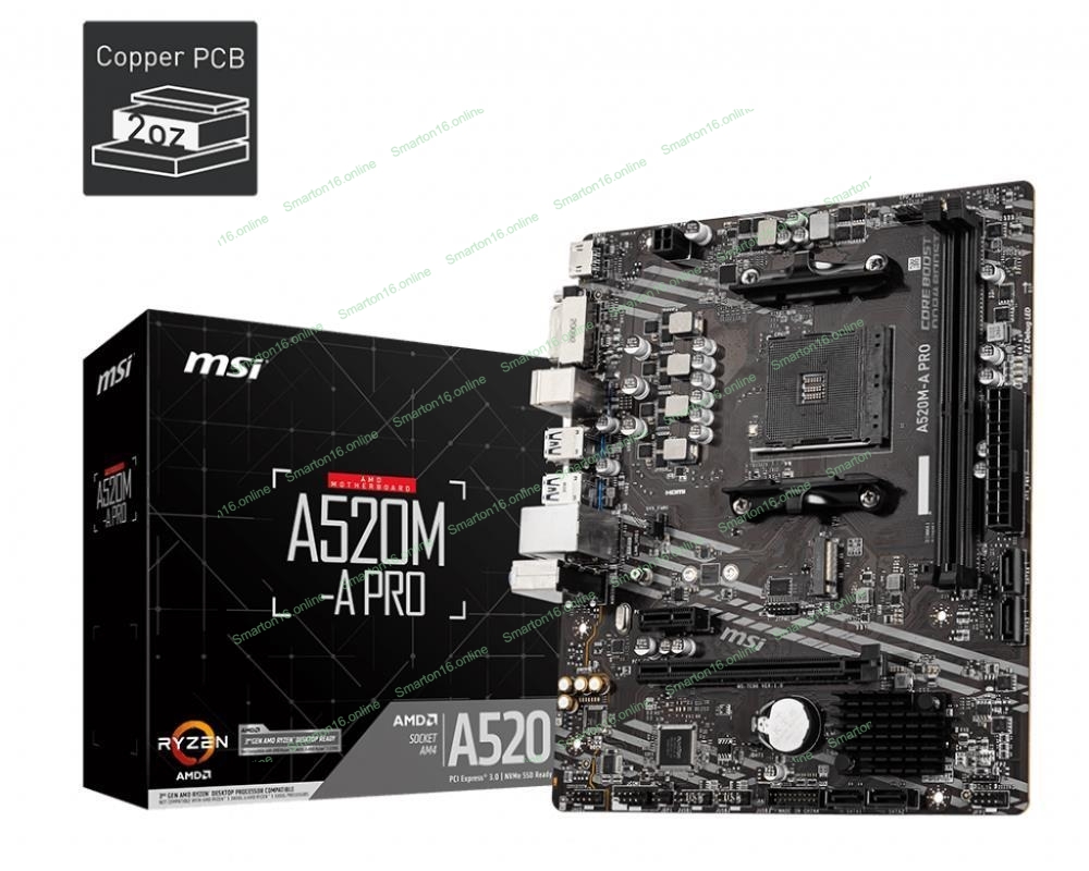 Материнская плата MSI A520M-A PRO, AM4, AMD A520, 2xDDR4, 4xSATA, 1xM.2, 1xPCIe 3.0 x16, 1xDVI-D, 1xHDMI, 1x 1Gb LAN, 2xUSB 2.0, 4xUSB 3.2 Gen 1, 3x3.5 мм, 7.1, mATX