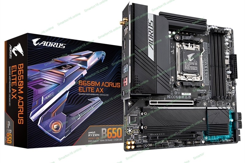 Материнская плата Gigabyte B650M AORUS ELITE AX, AM5, AMD B650, 4xDDR5, 4xSATA, 2xM.2, 1xPCI-E 5.0 x4, 1xPCI-E 4.0 x16, 1xHDMI, 1xDP, 1x 2.5Gb LAN, 4xUSB-A 2.0, 5xUSB-A 3.2 Gen 1, 2xUSB-A 3.2 Gen 2, 1xUSB-C 3.2 Gen 2, 2x3.5 мм, 7.1, Micro-ATX