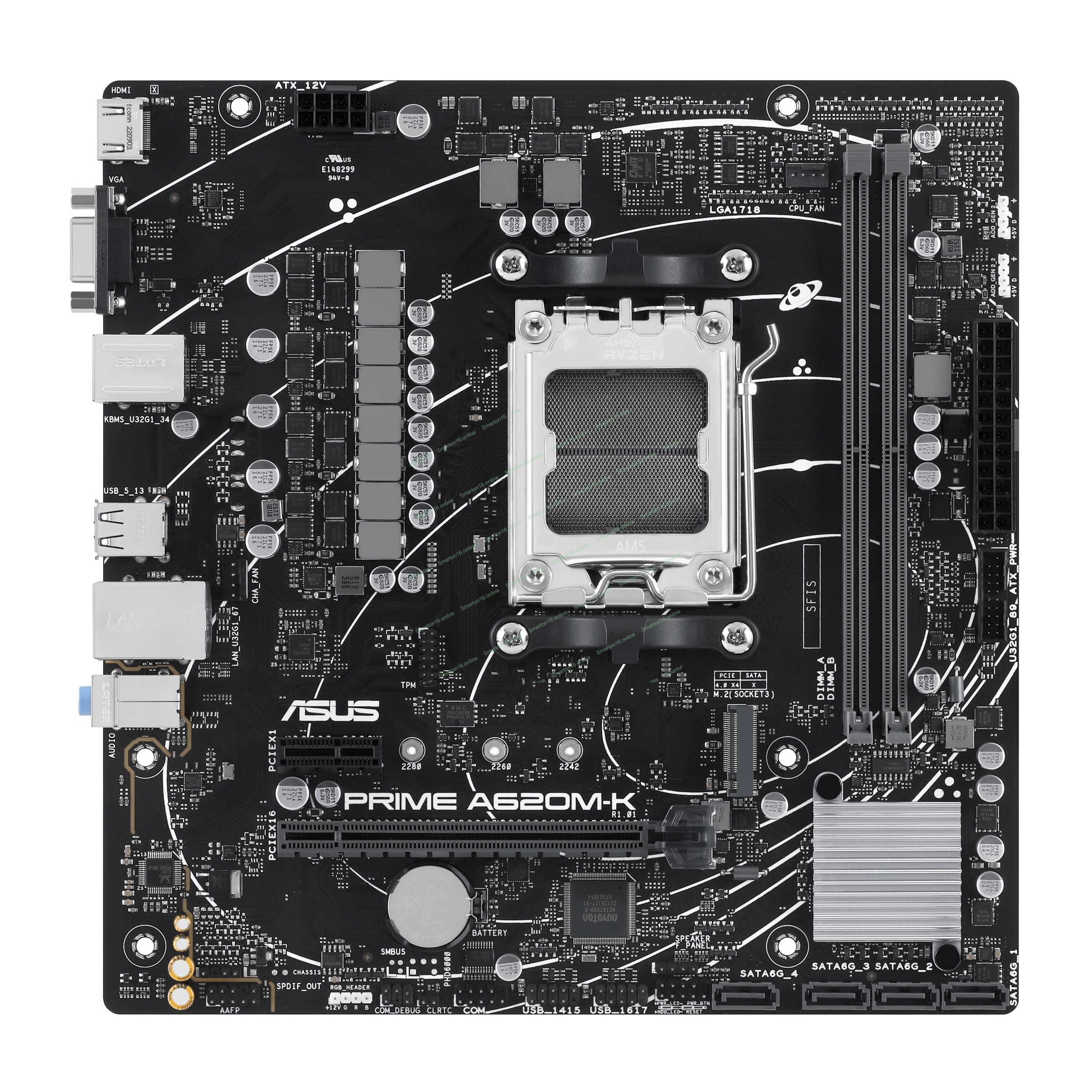 Материнская плата ASUS PRIME A620M-K, AM5, AMD A620, 2xDDR5, 4xSATA, 1xM.2, 1xPCI-E 4.0 x16, 1xPCI-E x1, 1xHDMI, 1xVGA, 1x 1Gb LAN, 4xUSB-A 3.2 Gen 1, 2xUSB-A 2.0, 3x3.5 мм, 7.1, Micro-ATX
