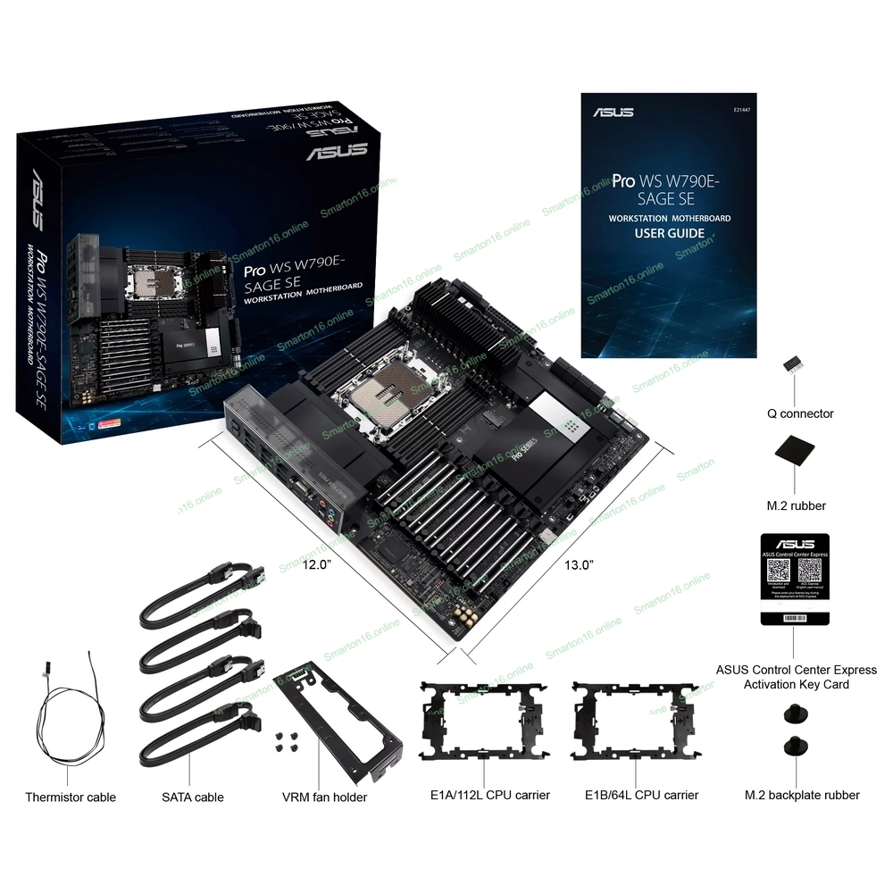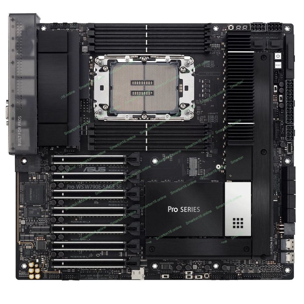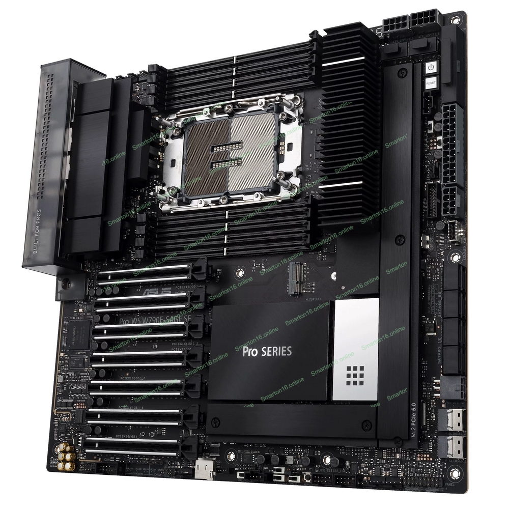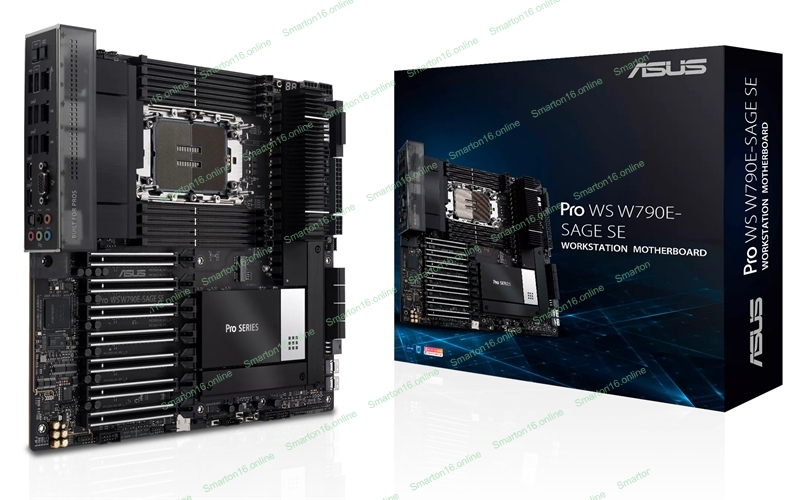 Материнская плата ASUS Pro WS W790E-SAGE SE, LGA4677, Intel W790, 8xDDR5 (ECC), 3xM.2, 2xSlimSAS, 8xSATA, 7xPCIe 5.0, 2x10Gb LAN, 1xUSB 3.2 Gen 2x2 (Type-C), 5xUSB 3.2 Gen 2 (Type-A + Type-C), 2xUSB 2.0, 5x3.5 мм, 7.1, EATX