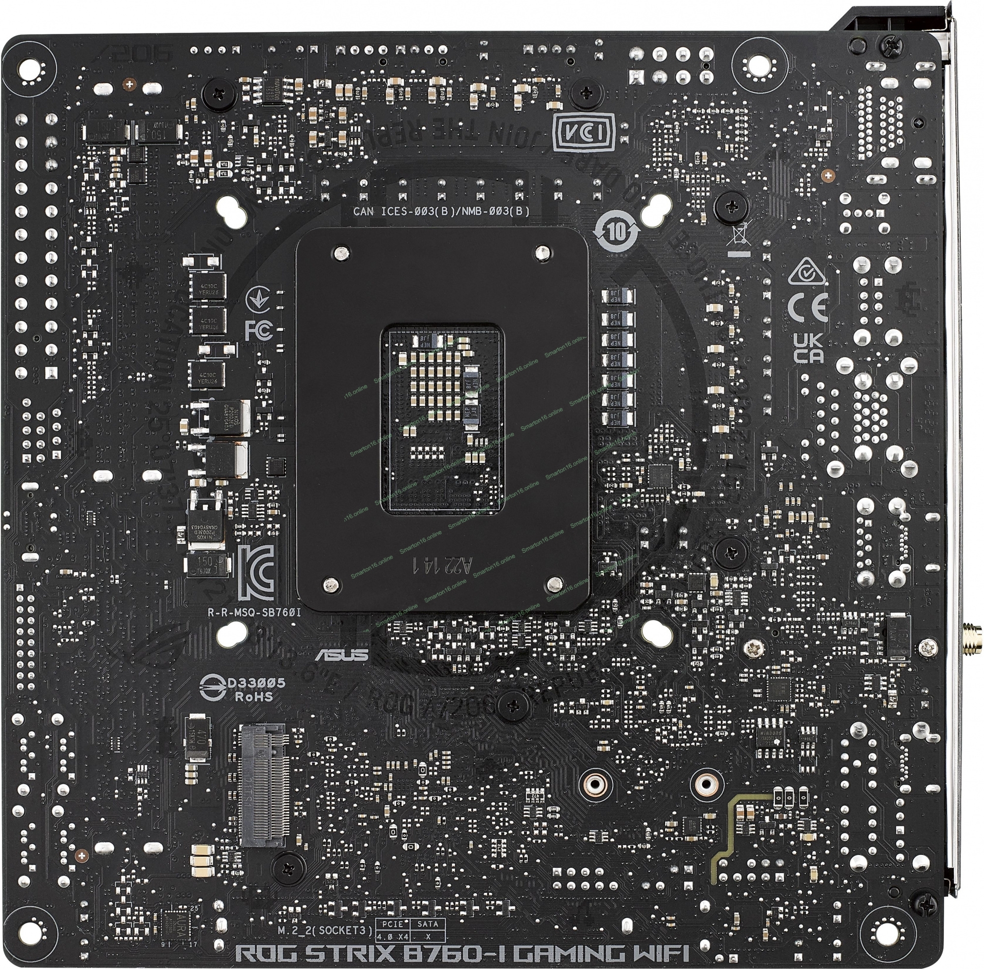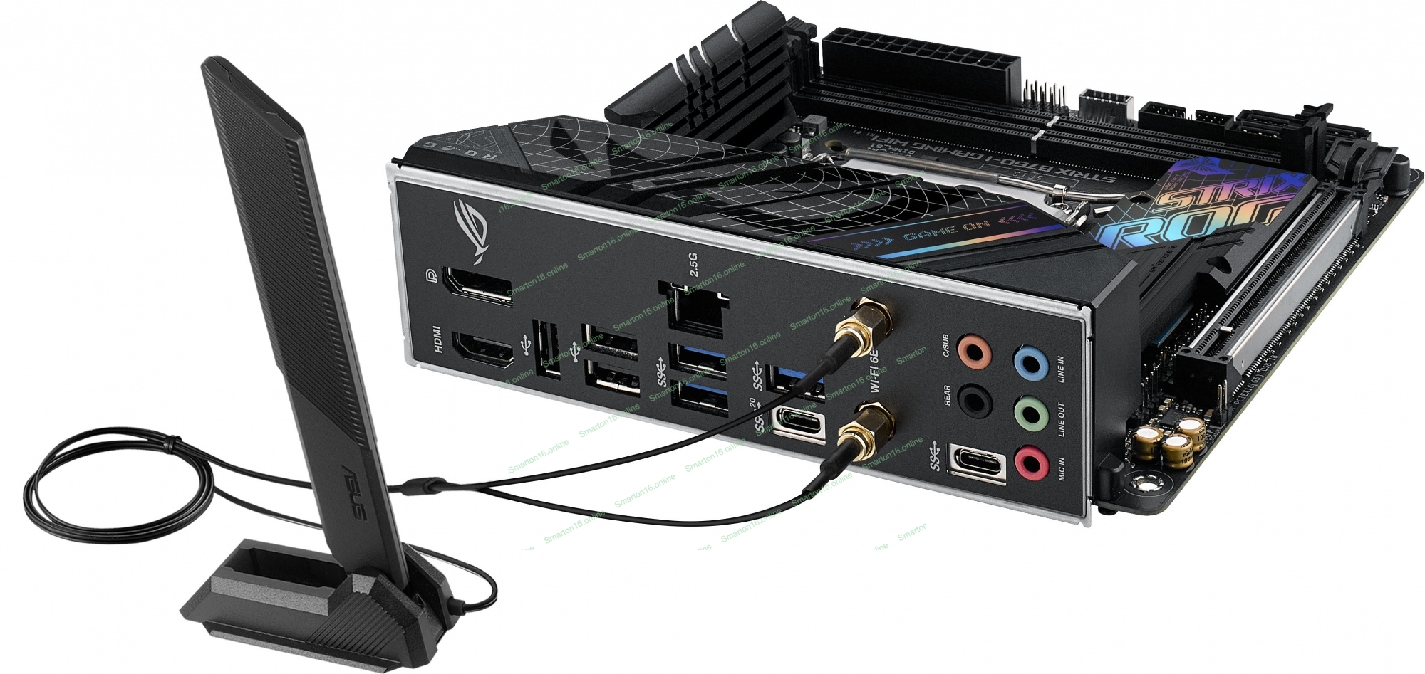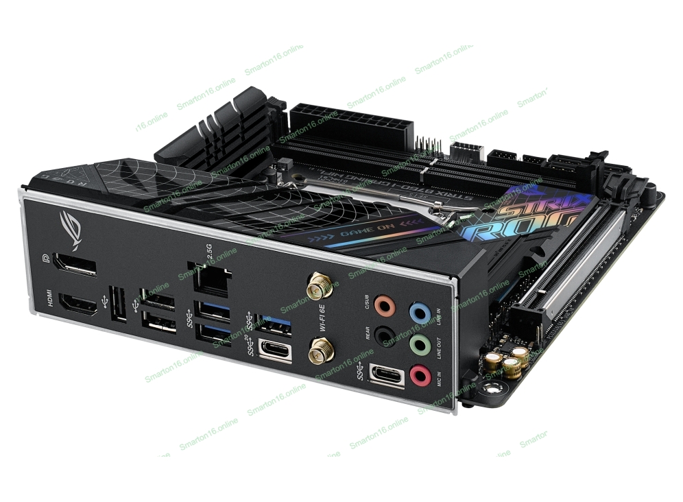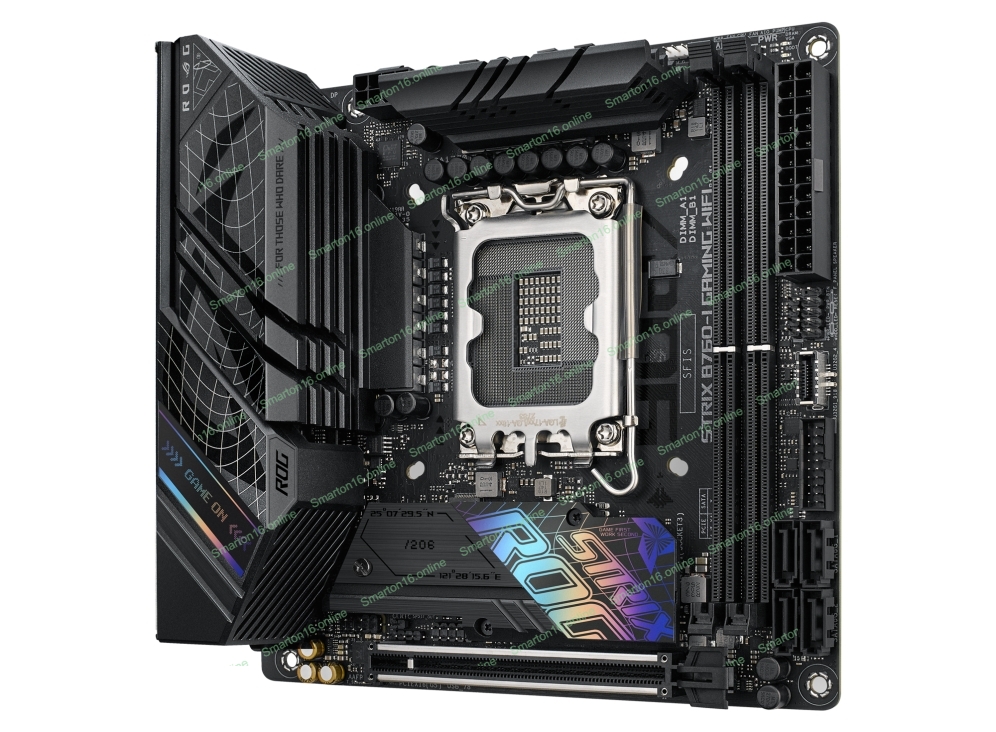 Материнская плата ASUS ROG STRIX B760-I GAMING WIFI, LGA 1700, Intel B760, 2xDDR5, 4xSATA, 2xM.2, 1xPCIe 5.0 x16, 1xHDMI, 1xDP, 1x 2.5Gb LAN, 3xUSB-A 2.0, 3xUSB-A 3.2 Gen 1, 1xUSB-C 3.2 Gen 1, 1xUSB-C 3.2 Gen 2x2, 5x3.5 мм, 7.1, Mini-ITX