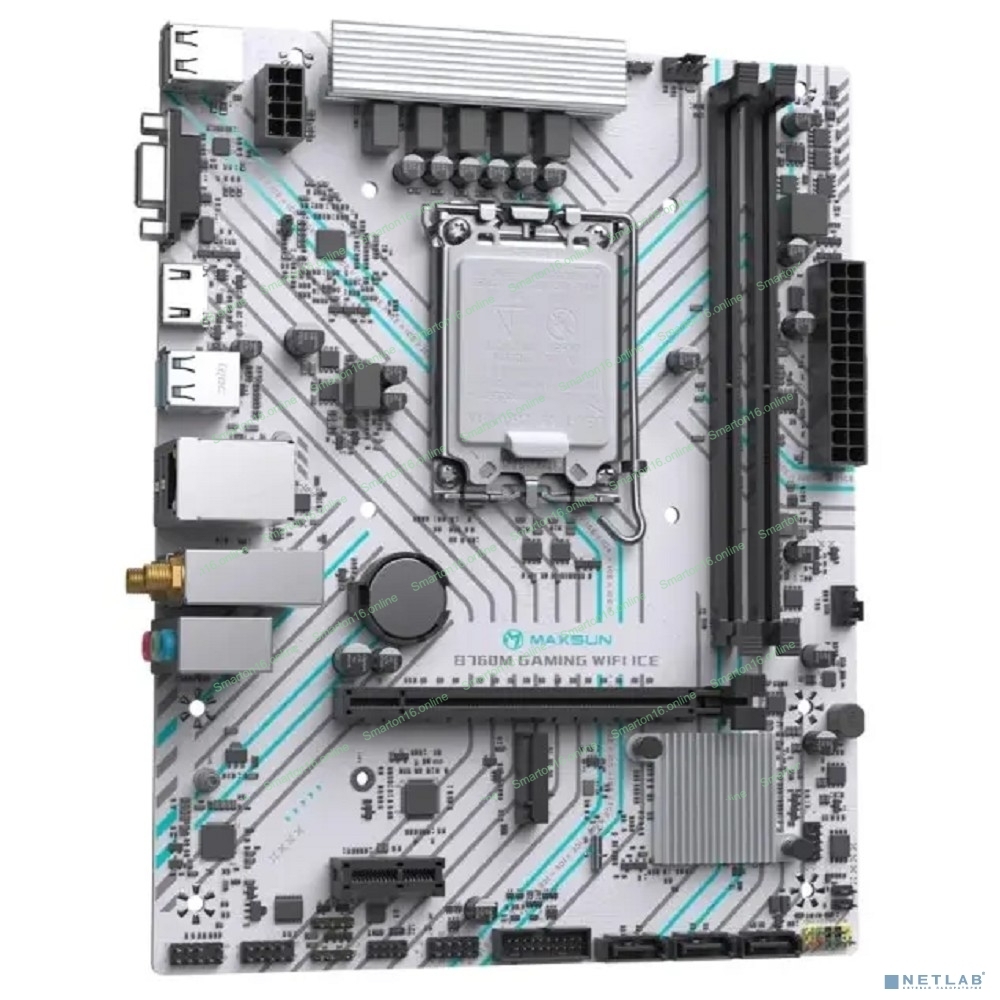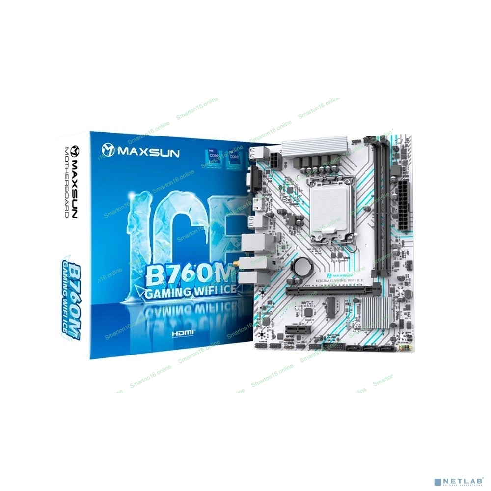 Материнская плата Maxsun MS-B660M GAMING WIFI ICE (Socket 1700, mATX, 2*DDR4(64Gb), VGA/HDMI, 3*SATA3, 1*M.2, 1*PCIEx16/1*PCIEx1, 4*USB2.0, 2*USB 3.2, LAN 1*1G, Bluetooth 4.2, Wi-Fi 802.11ac, RTL)