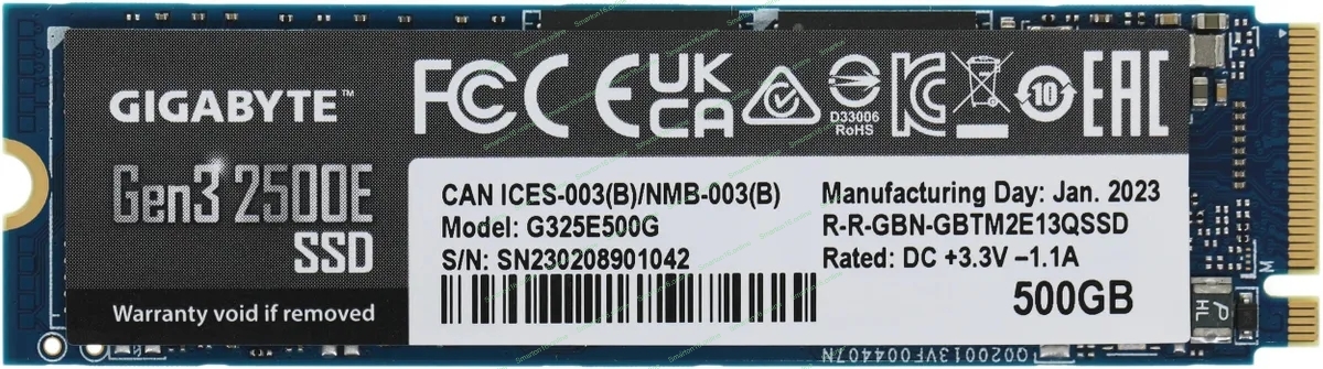 Накопитель SSD GIGABYTE AORUS Gen3 2500E, 500Gb, M.2 2280, PCIe 3.0 x4, NVMe, R/W 2300/1500
