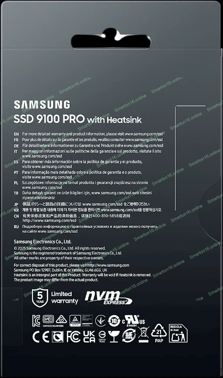 Накопитель SSD 1Tb Samsung 9100 PRO, M.2, PCI-E 5.0 x4, TLC 3D NAND R/W - 14800/13400 Mb/s с радиатором