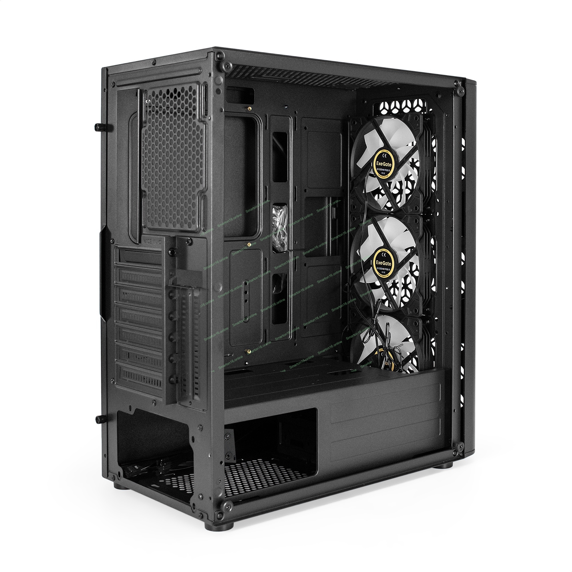 Компьютерный корпус Miditower ExeGate EVO-9202 (ATX, без БП, с окном, 1*USB+1*USB 3.0, аудио, 3 вент. 12см с RGb подсветкой)