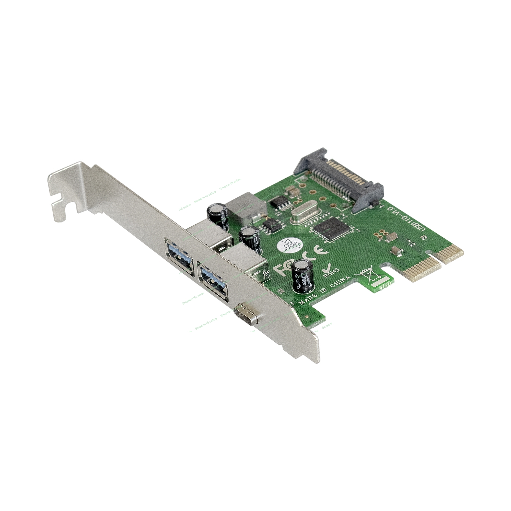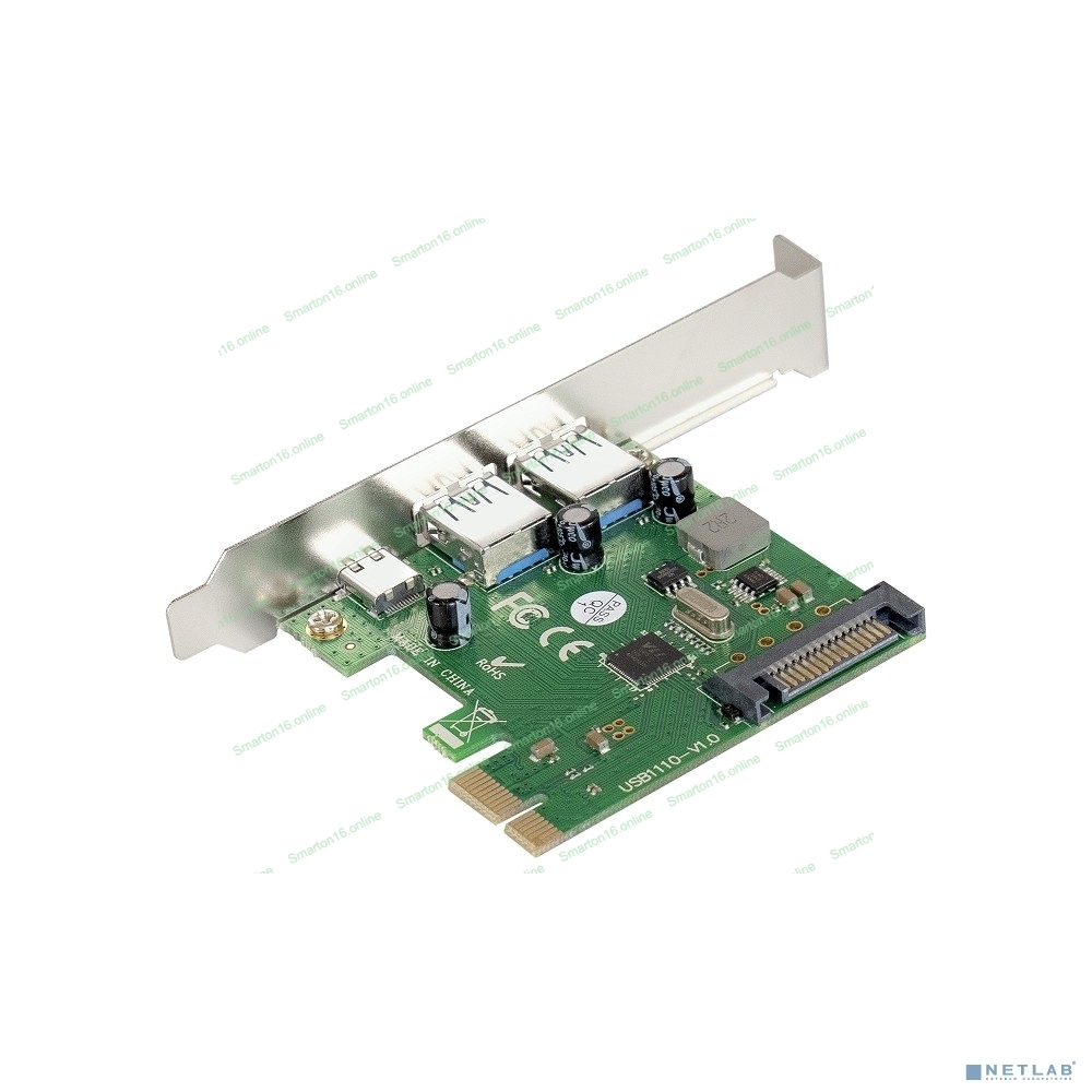 Контроллер ExeGate EXE-323 PCI-E 2.0, 2*USB 3.0 ext + 1*Type-C, разъем доп.питания (OEM)