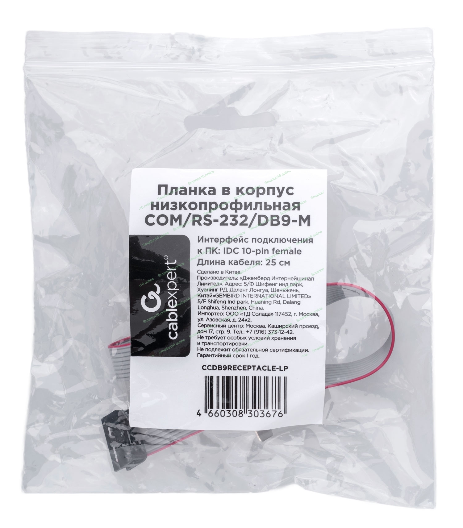 Планка на заднюю панель низкопрофильная Cablexpert CCDB9RECEPTACLE-LP, 1 порт COM/RS-232/DB9-M
