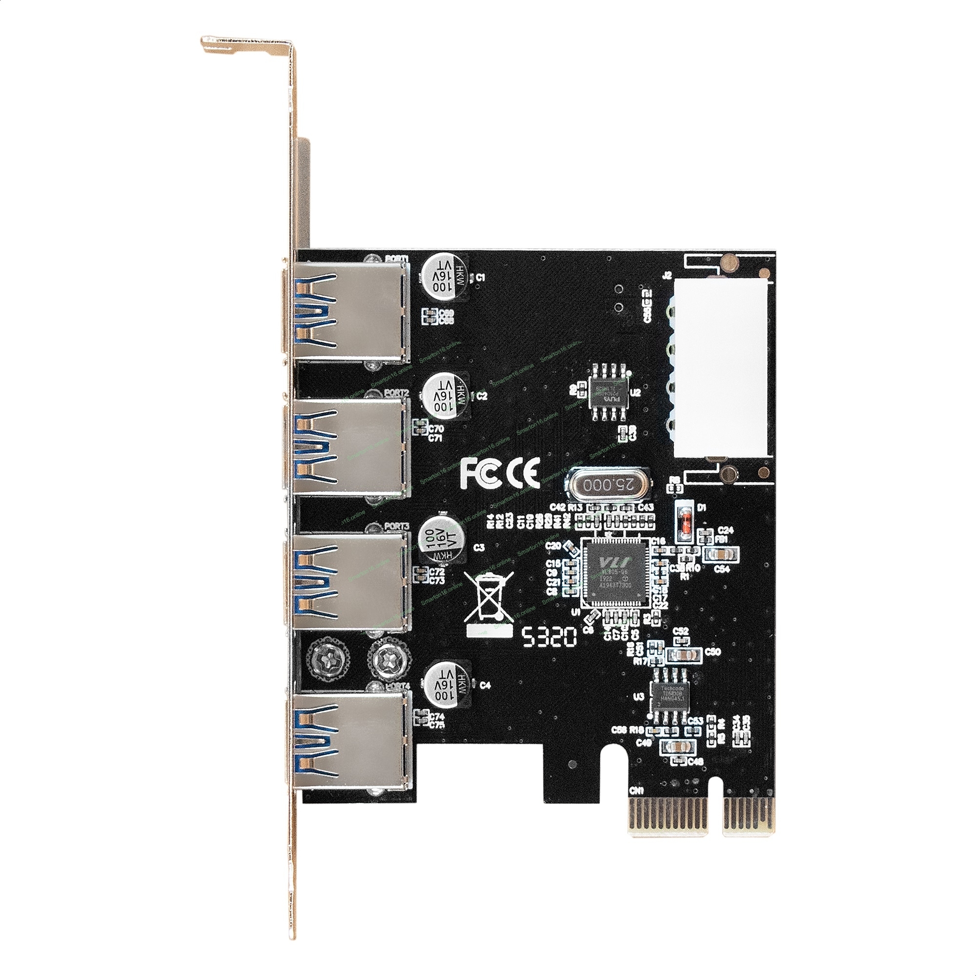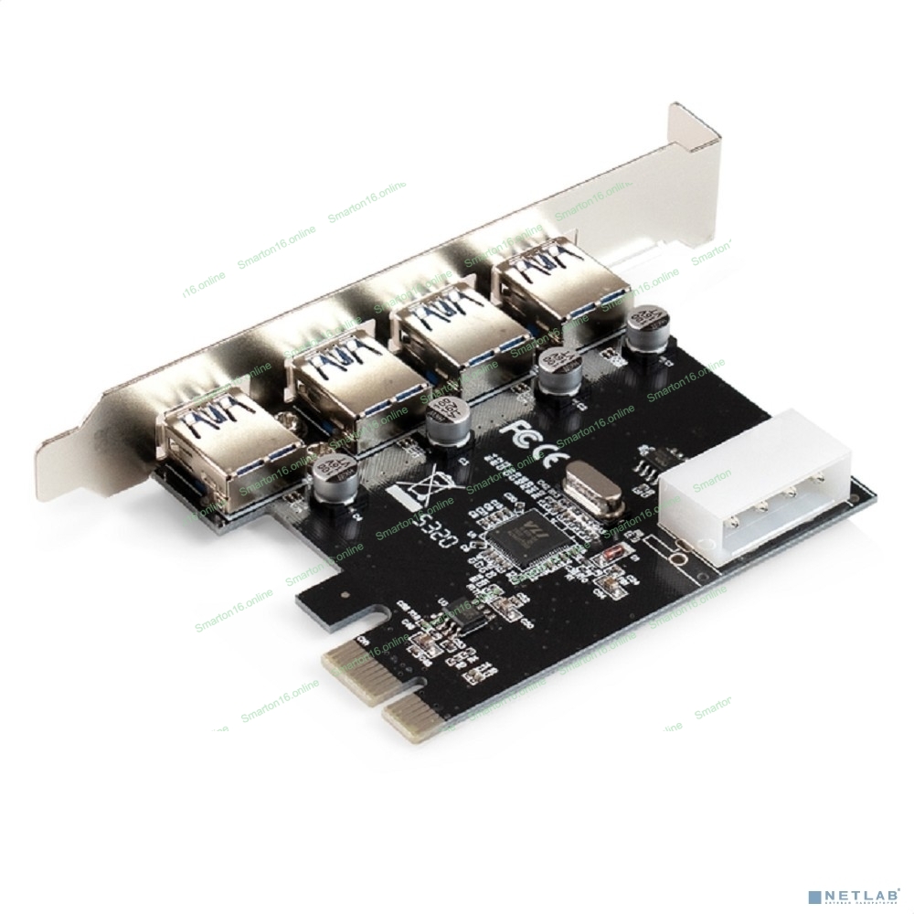 Контроллер ExeGate EXE-314 v2.0 (PCI-E x1 v2.0, 4хUSB 3.0 ext., разъем доп.питания Molex, VIA Labs Chipset VL805)