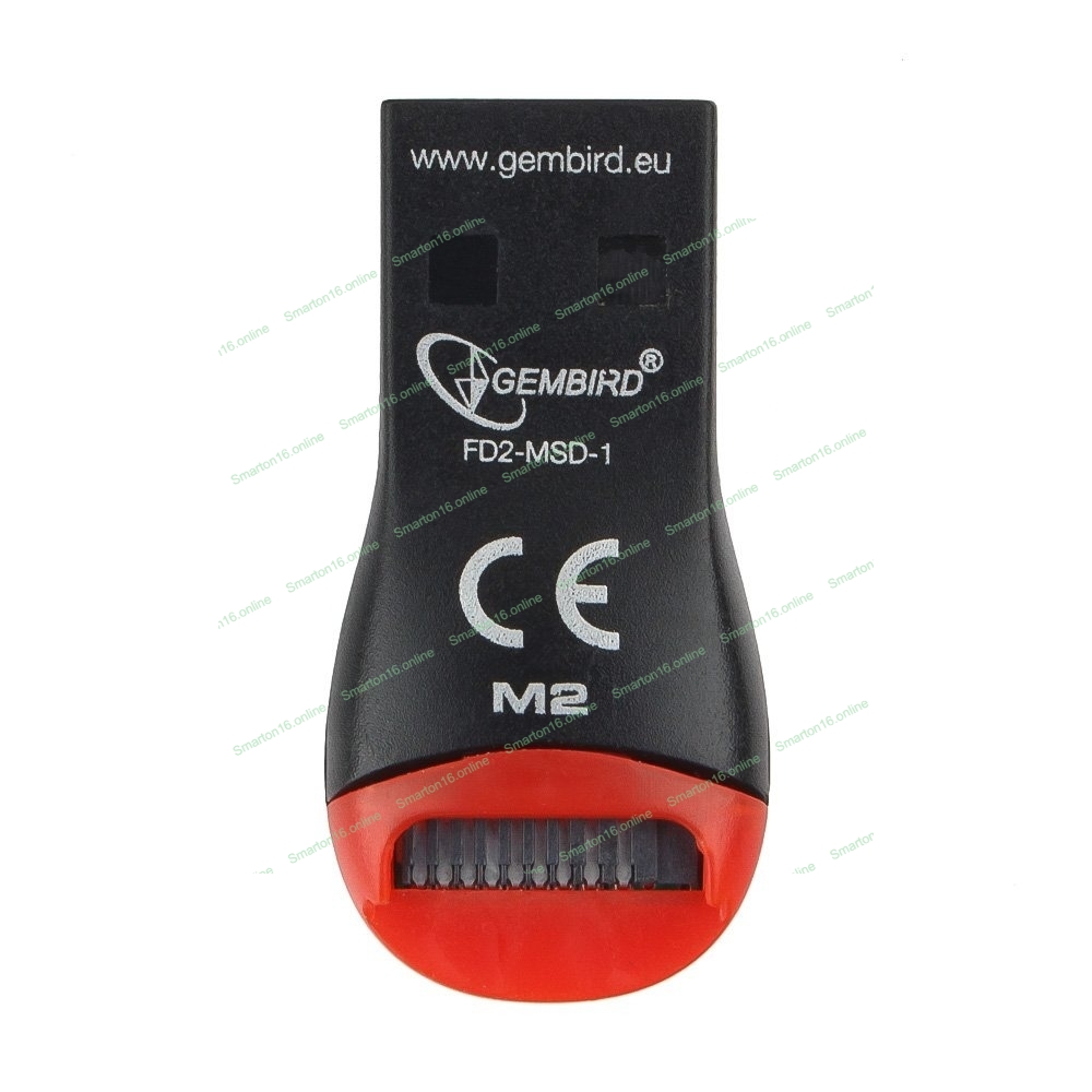 Кард-ридер Gembird FD2-MSD-1/черный-красный/Micro SD/SDHC/USB 2.0/пластик