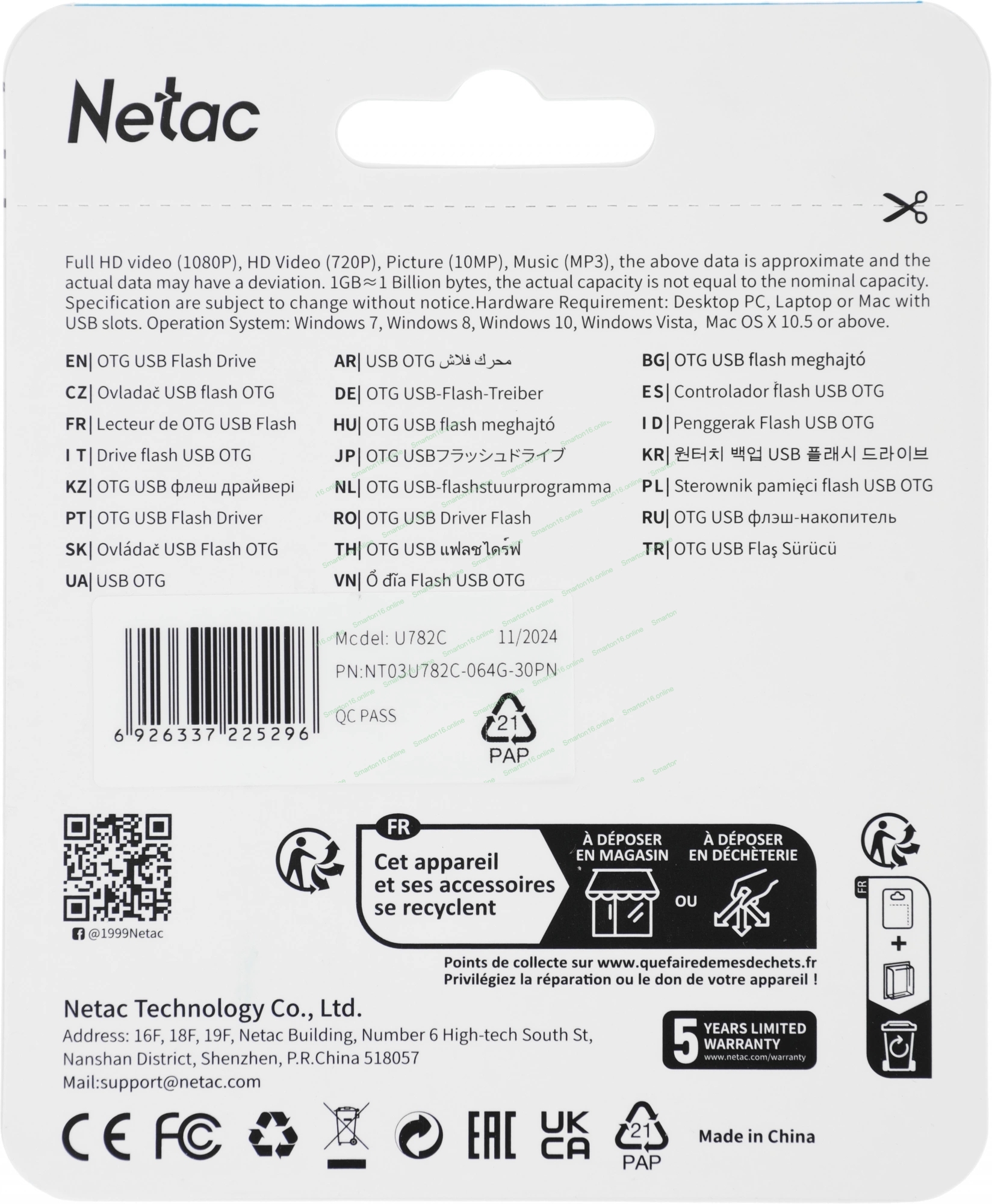 Флешка USB Netac U782C dual USB 3.0+TypeC 64Gb, retail version