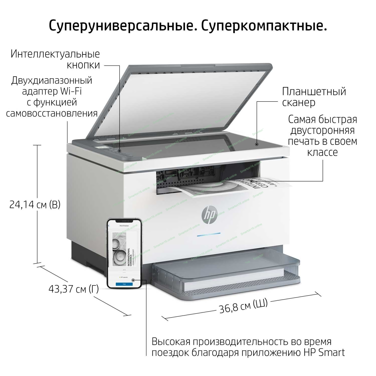 МФУ лазерное HP LaserJet M236dw (9YF95A), A4, ч/б, печ. до 29 стр/мин., 600 x 600 dpi, USB, RJ-45, Wi-Fi, Air Print, Mopria