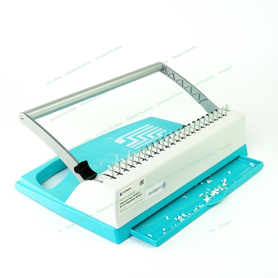 Переплетчик Heleos БП9п бирюзово-белый (БП9ПББ) A4/перф.9л.сшив/макс.150л./пластик.пруж. (6-19мм)