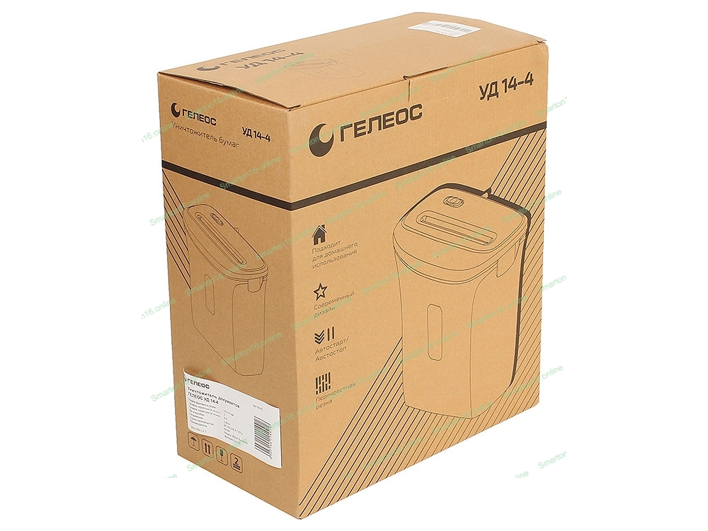 Шредер ГЕЛЕОС УД14-4, (DIN P-4), фрагмент 3,9х30мм, 6-8 лист (70г/м2), скобы, 14 литров