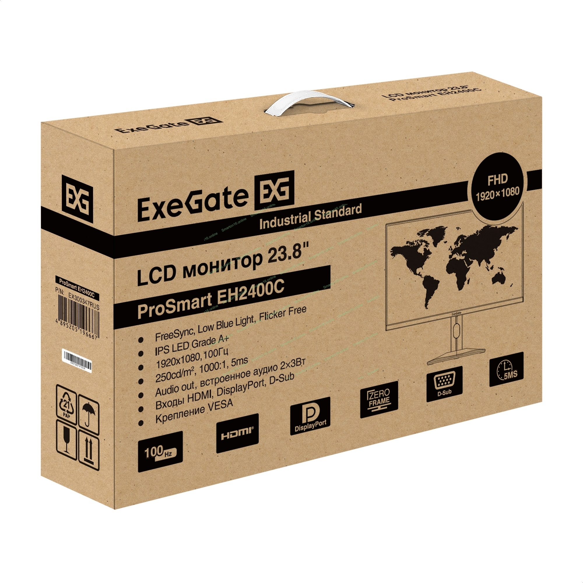 Монитор с аудио 23.8" 100 Гц ExeGate ProSmart EH2400C (IPS LED Grade A+, FHD, 1920x1080@100Гц, 16:9, 250cd/m2, 1000:1, 178°/178°, 3-5ms, audio-out, Speakers, D-Sub, HDMI, DisplayPort, кабель HDMI 1,5м, VESA, регулировка высоты (HAS), регулировка наклона (tilt), поворот экрана (swivel), поворот экрана на 90° (pivot), чёрный)