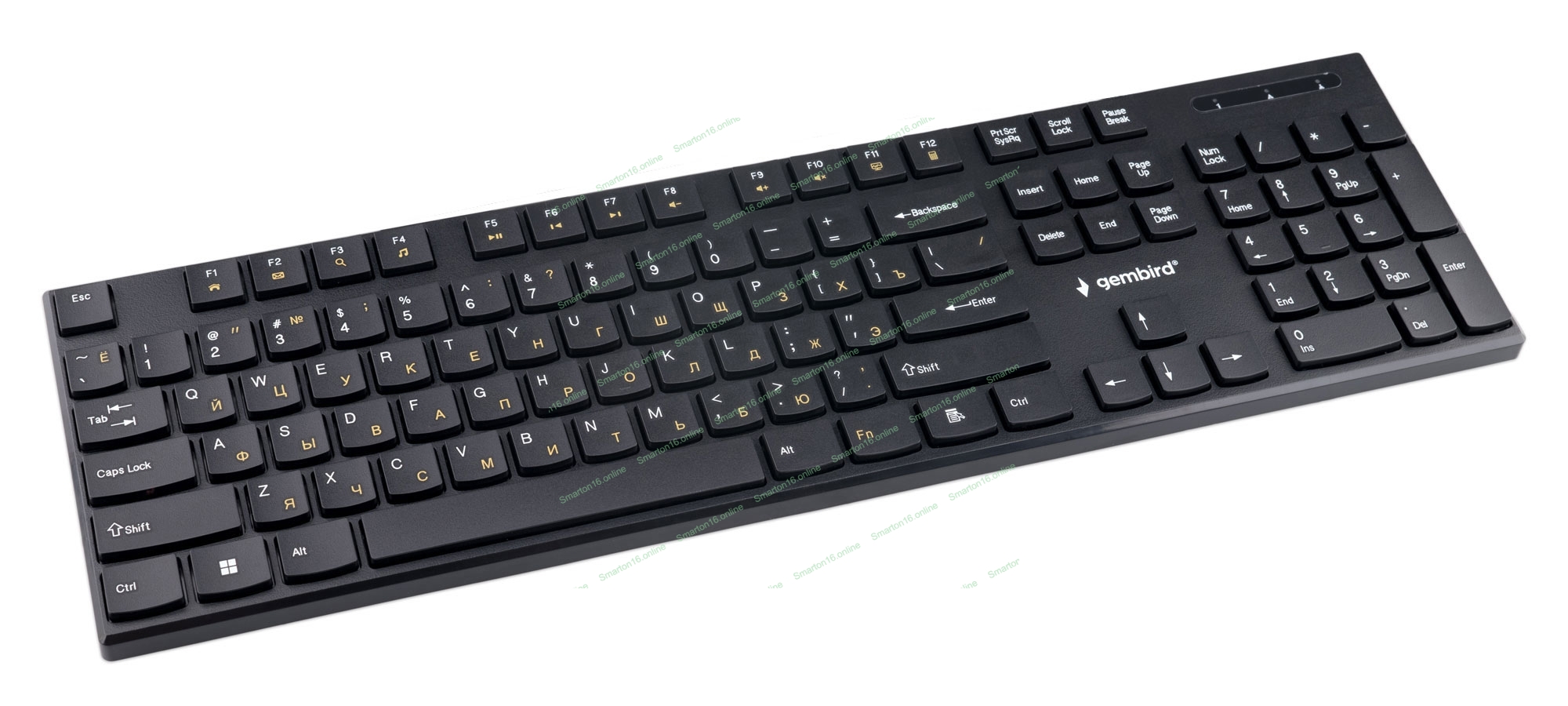 Клавиатура беспроводная Gembird KBW-250, полноразмерная, 104кл, 12Fn, низкий профиль, 2.4 ГГц, черная