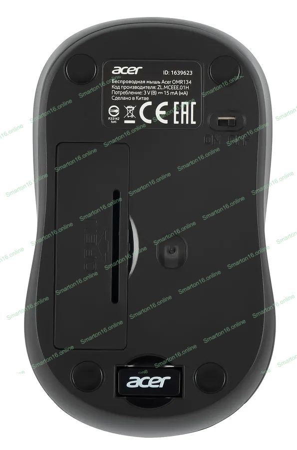 Мышь беспроводная Acer OMR134 серый, 1000 dpi, радиоканал, USB, кнопки - 3