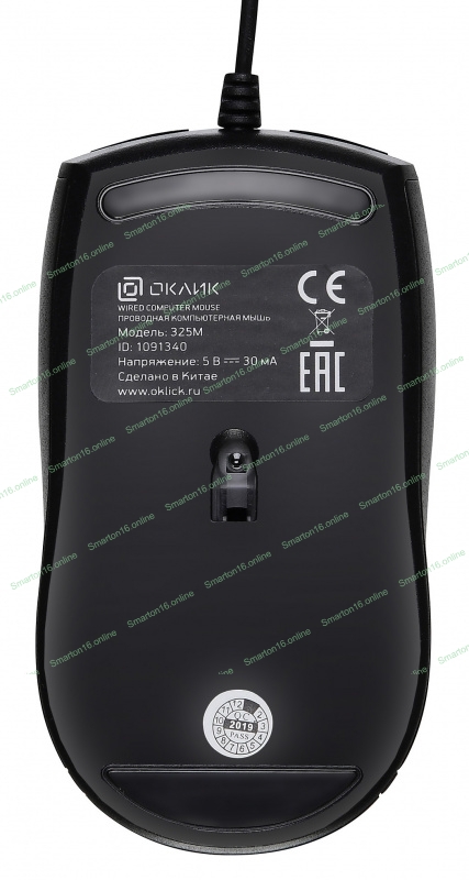 Мышь проводная Oklick 325M черный, 1000 dpi, USB, кнопки - 3
