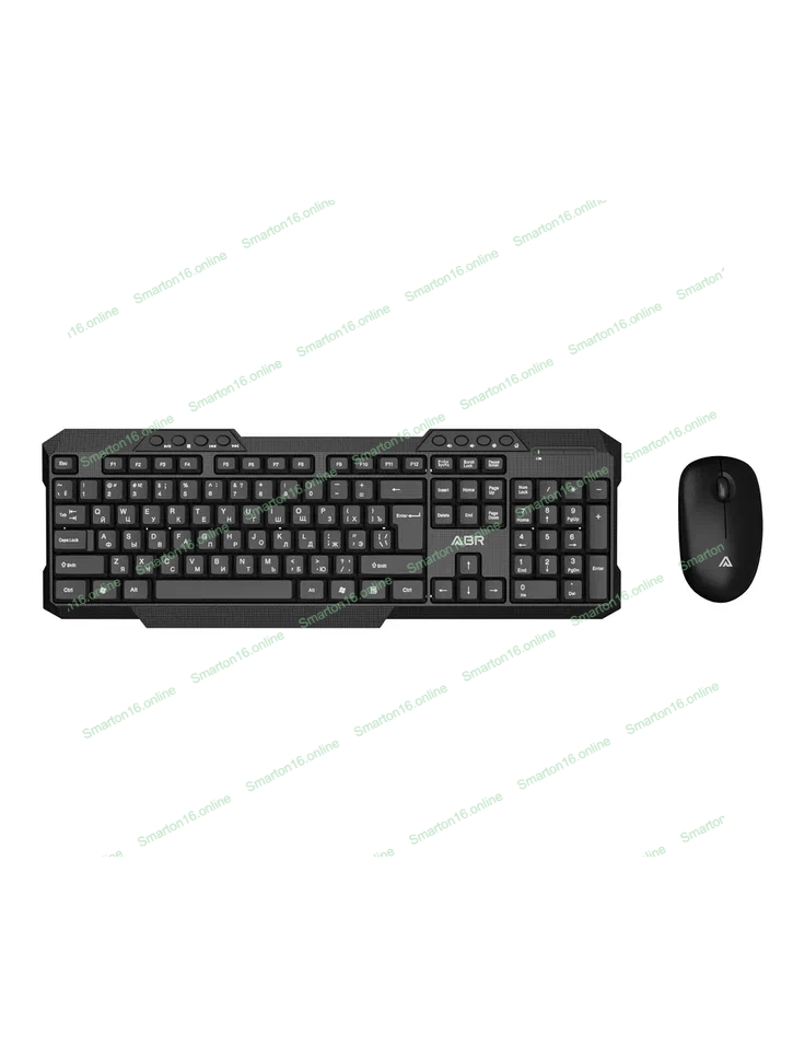 Комплект клавиатура и мышь ABR KW807 черный, интерфейс USB, беспроводной, 2.4G, RU/EN