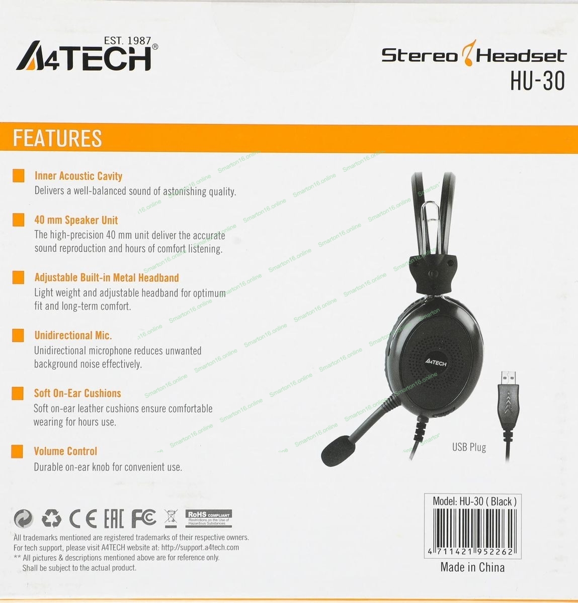 Гарнитура A4Tech HU-30 чёрный, проводная