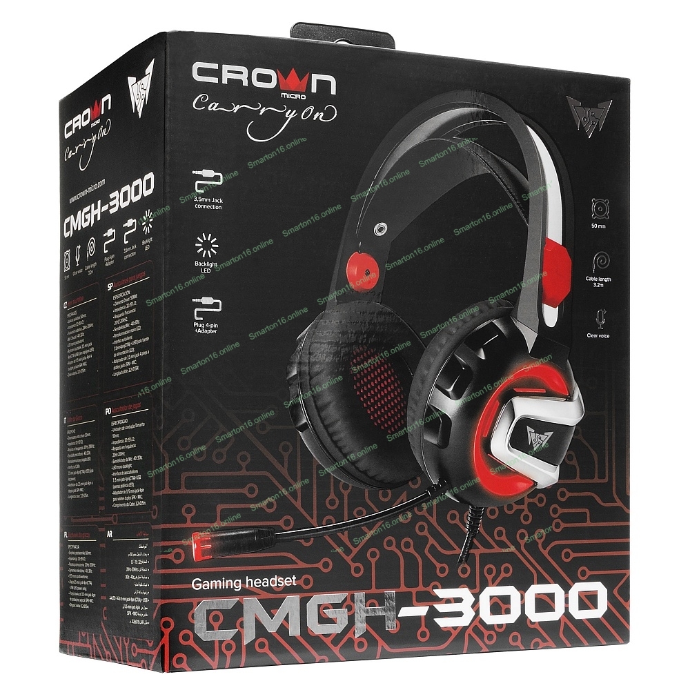 Гарнитура Crown CMGH-3000 чёрный/красный, проводная, подсветка