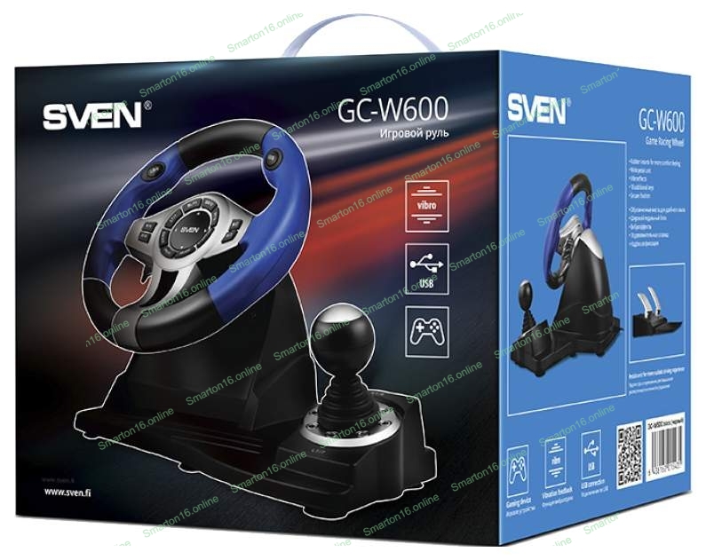 Руль черный SVEN GC-W600 (виброотдача, педали, джойстик, 12 кн., USB)