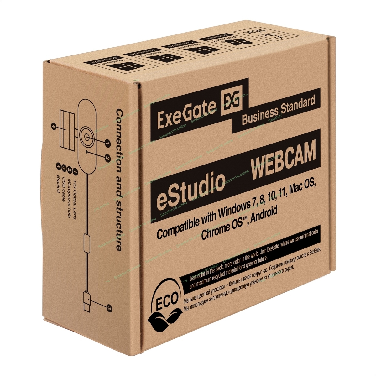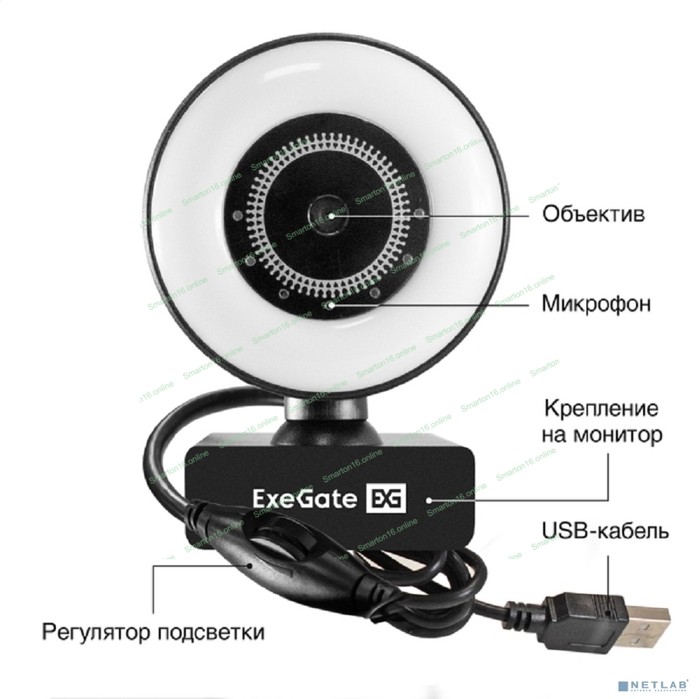 Веб-камера ExeGate eStudio EW-721 2560x1440, 30 кадр/с, USB Type-A, микрофон (2 шт, шумоподавление), автоматическая фокусировка, автоосвещение, универсальное крепление