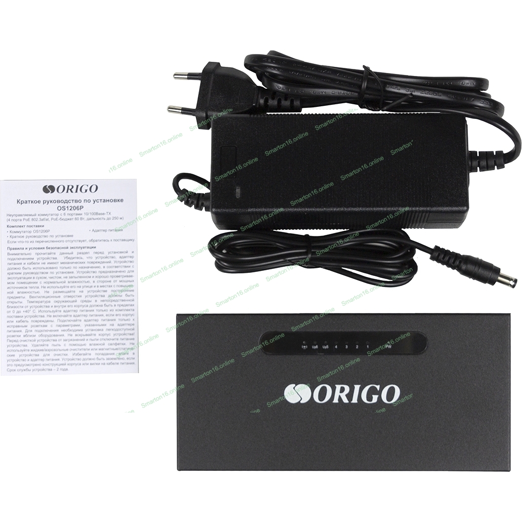 Коммутатор неуправляемый PoE ORIGO OS1206P/60W/A1A 4x100Base-TX PoE+, 2x100Base-TX, PoE-бюджет 60 Вт, корпус металл