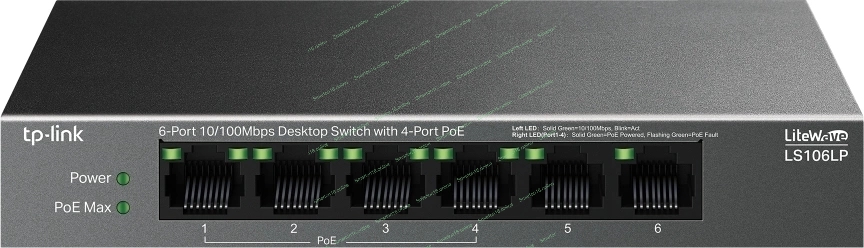 Коммутатор настольный TP-Link LS106LP с 6 портами 10/100 Мбит/с (4 порта PoE)